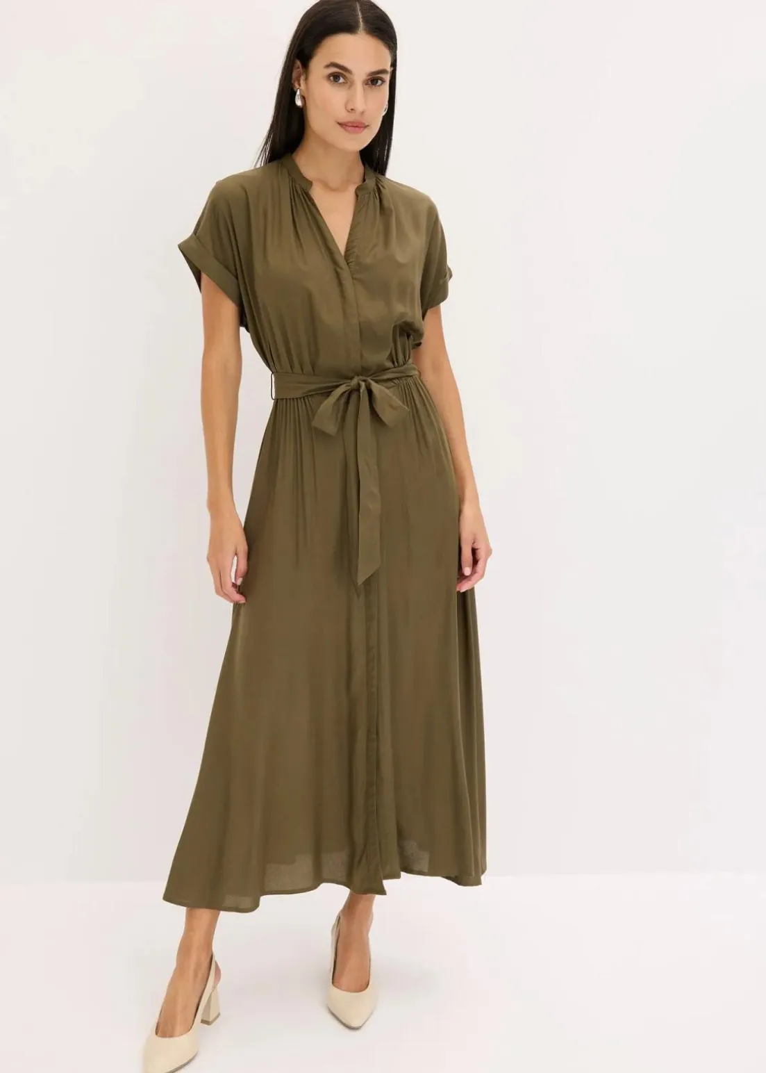 Modisches Hemdblusenkleid mit Bindeband um die Taille.