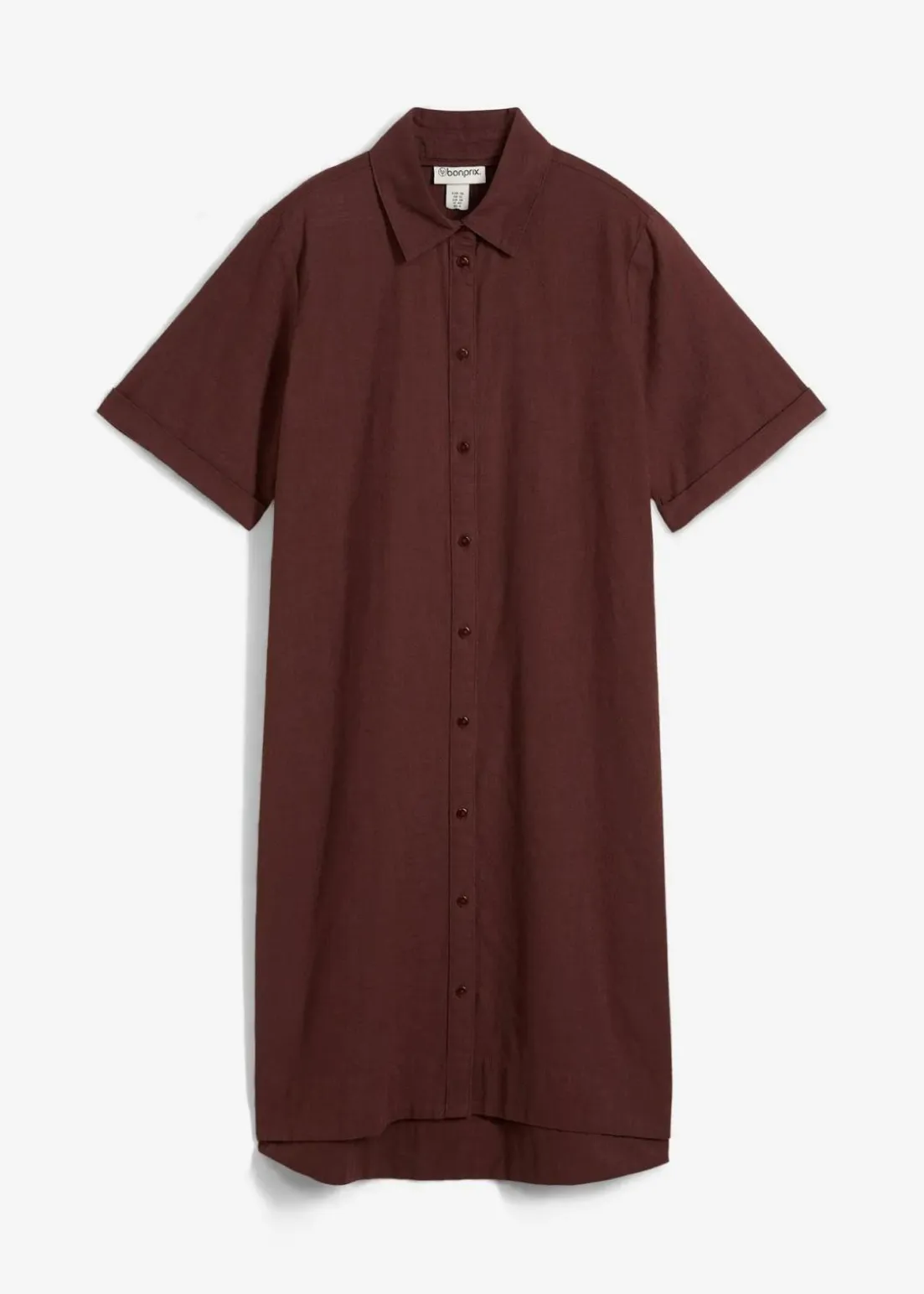 Hemdblusenkleid, gerade und lässig geschnitten. Leicht ausgestellt zum Saum, seitliche Schlitze, weit geschnittener Ärmel