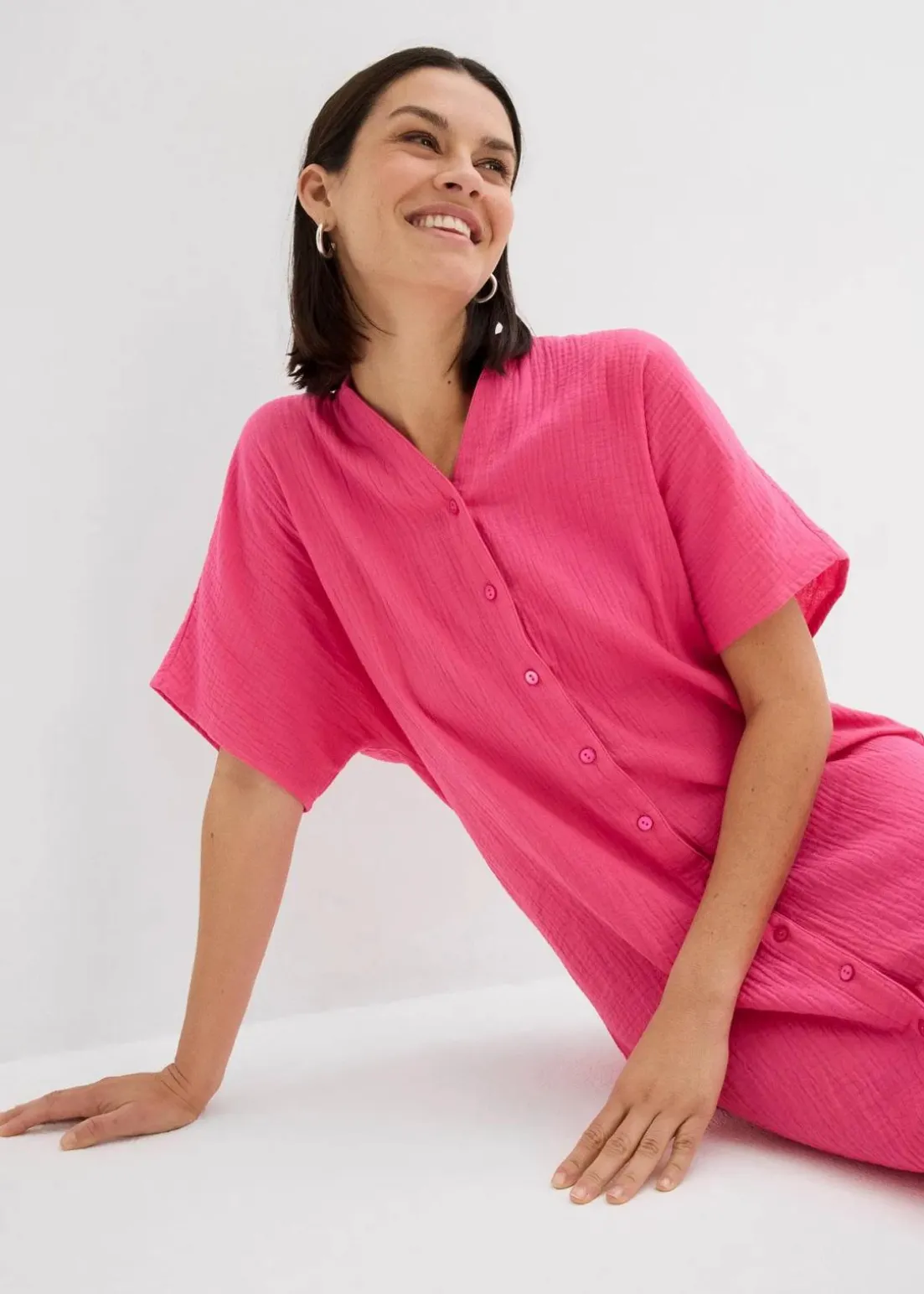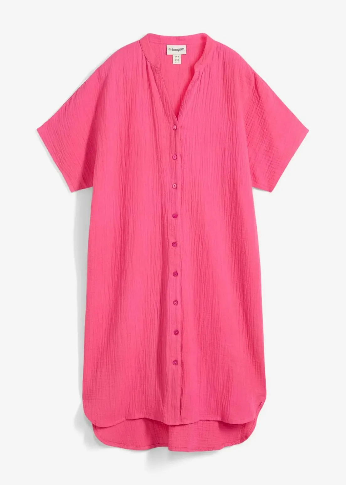 Musselin-Kleid mit Henley-Kragen, knieumspielend