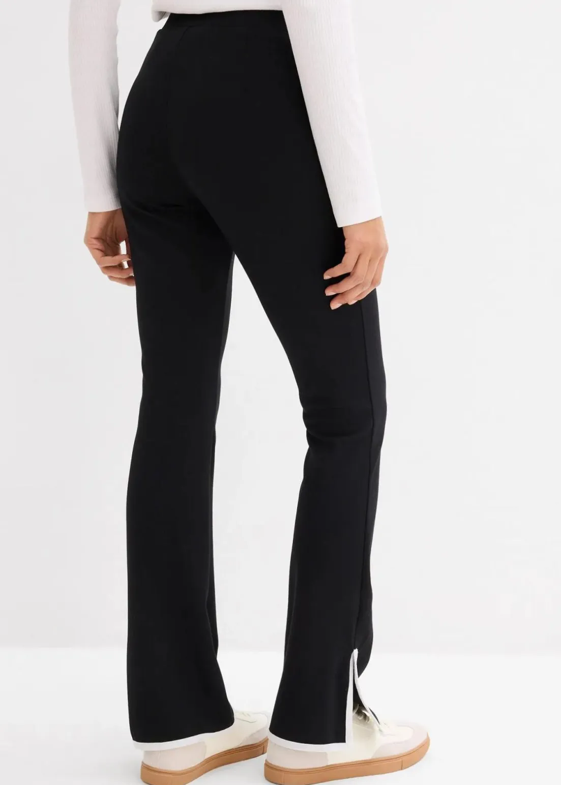 Ausgestellte Hose mit kontrastierendem Seitenschlitz und zwei Paspeltaschen vorne