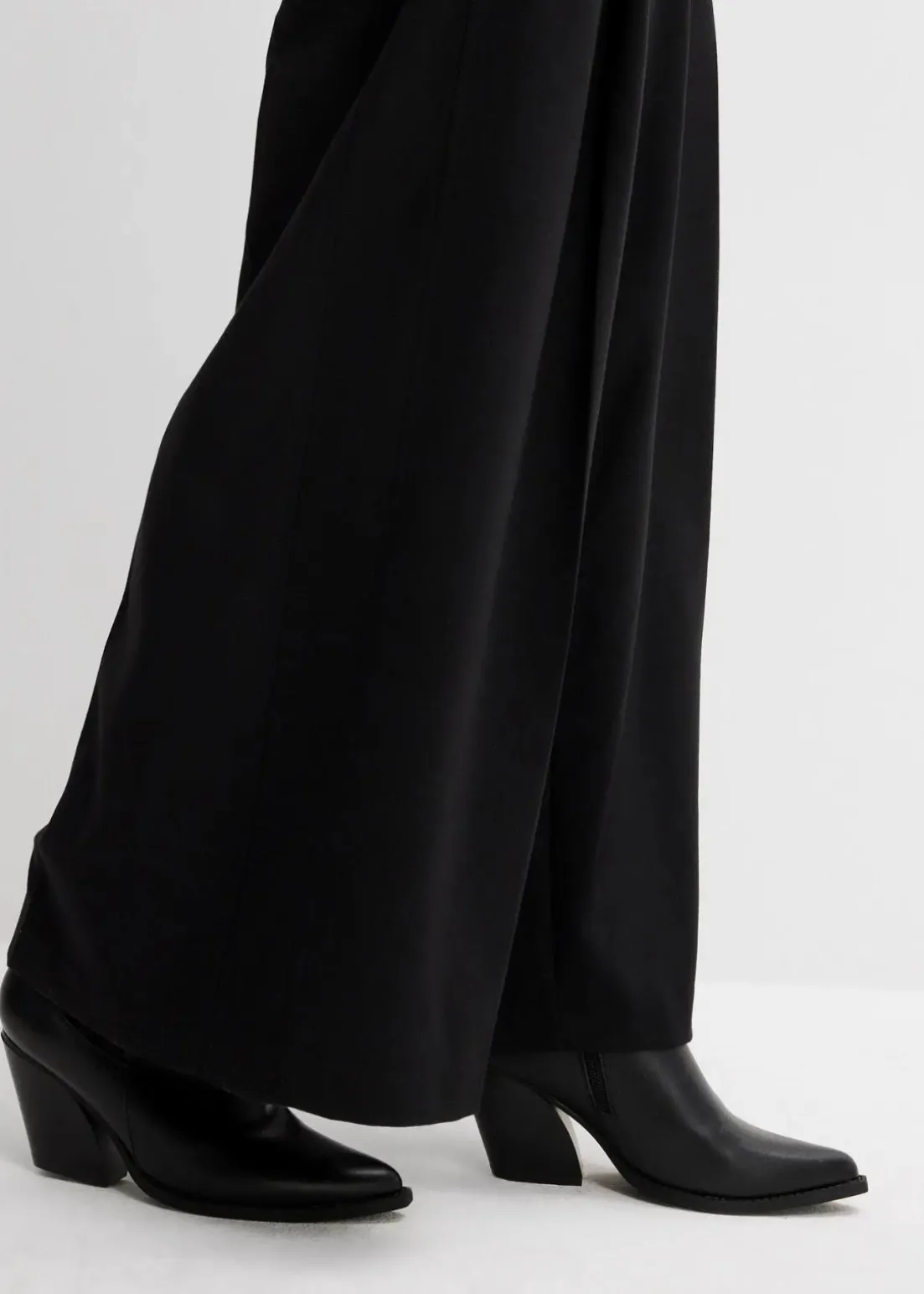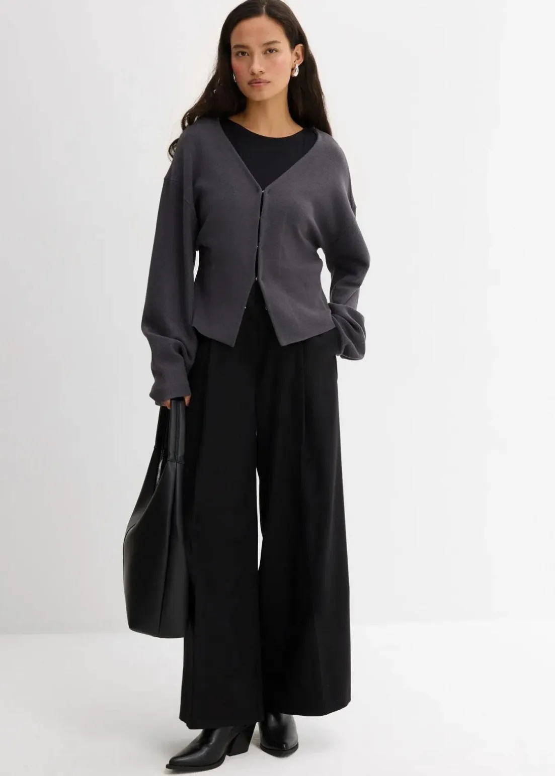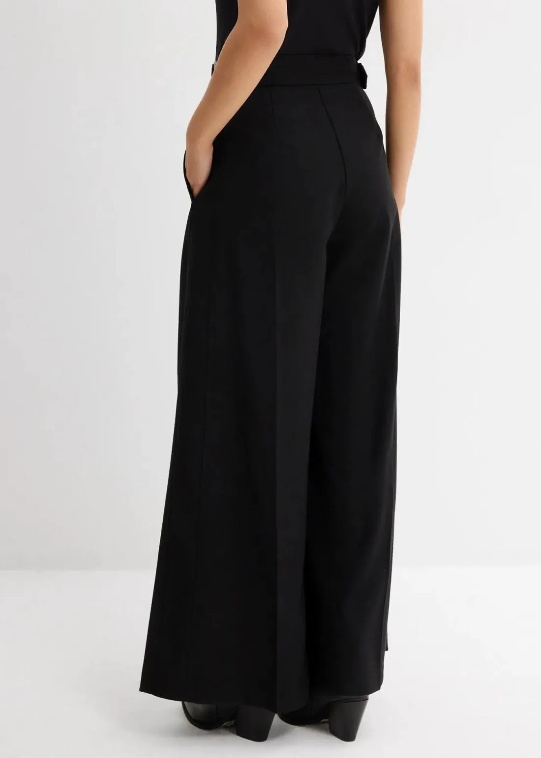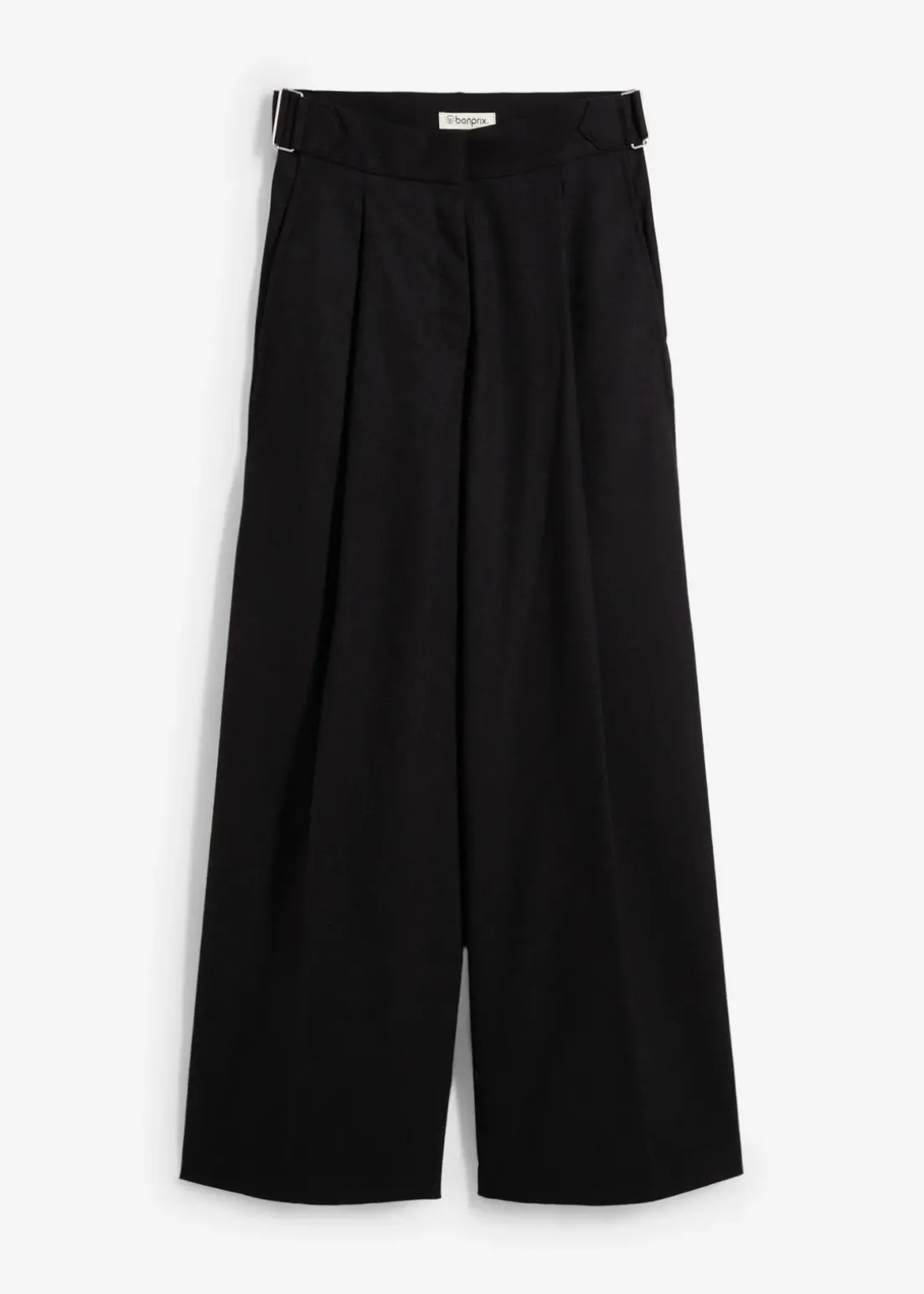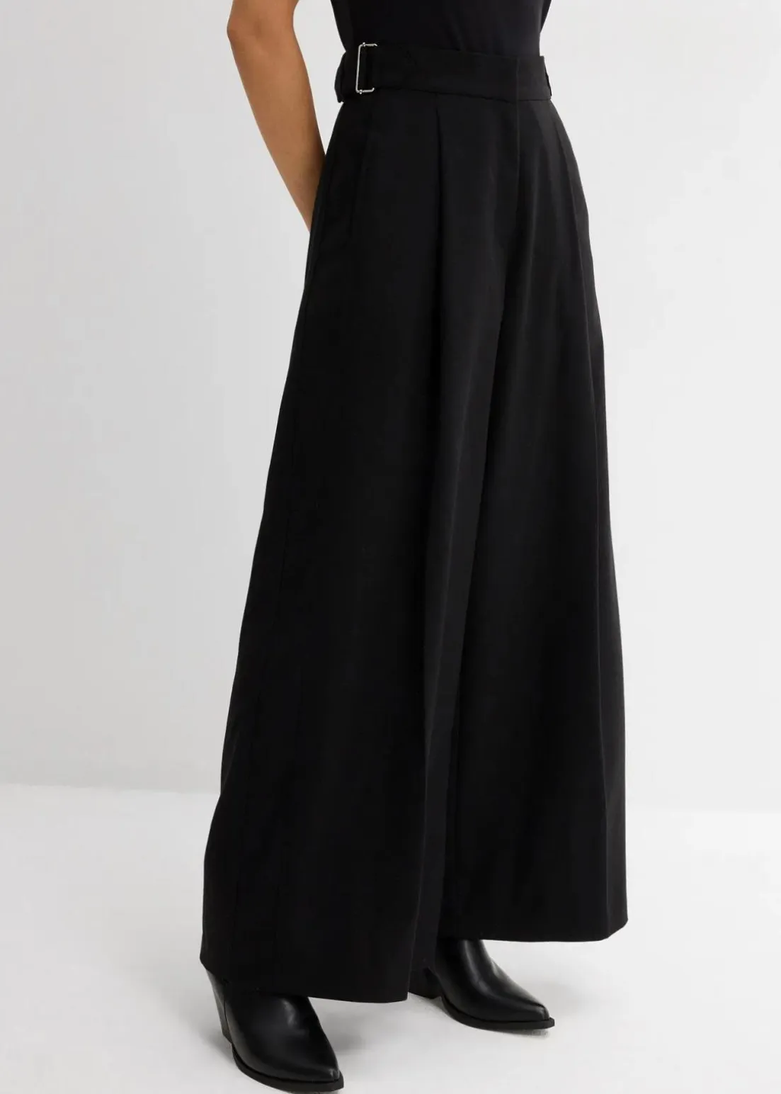 Locker geschnittene Hose mit Bundfalten und Bügelfalte vorne und hinten. Dezente Seitentaschen und ein verstellbarer Riegel mit Metallschnalle an beiden Seiten des Bunds.