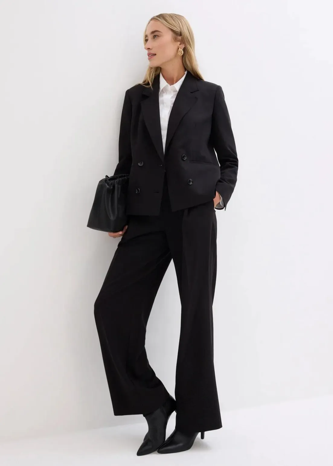 modischer Zweiteiler – Blazer mit betonten Schultern und Hose mit elegant weitem Bein