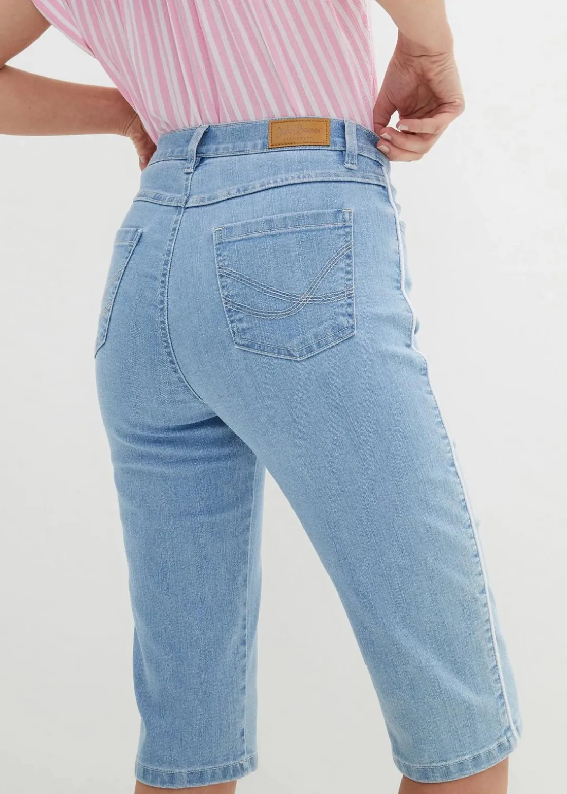 Schmale Bermuda-Jeans mit Stretch und seitlichen Streifen