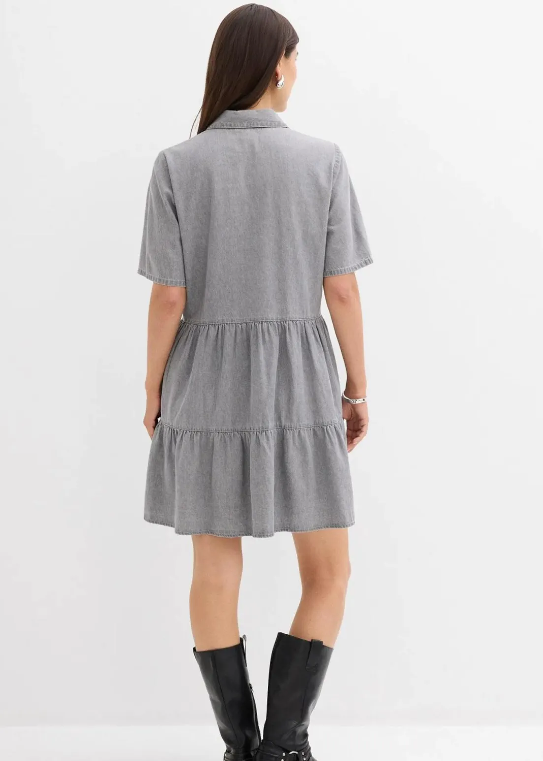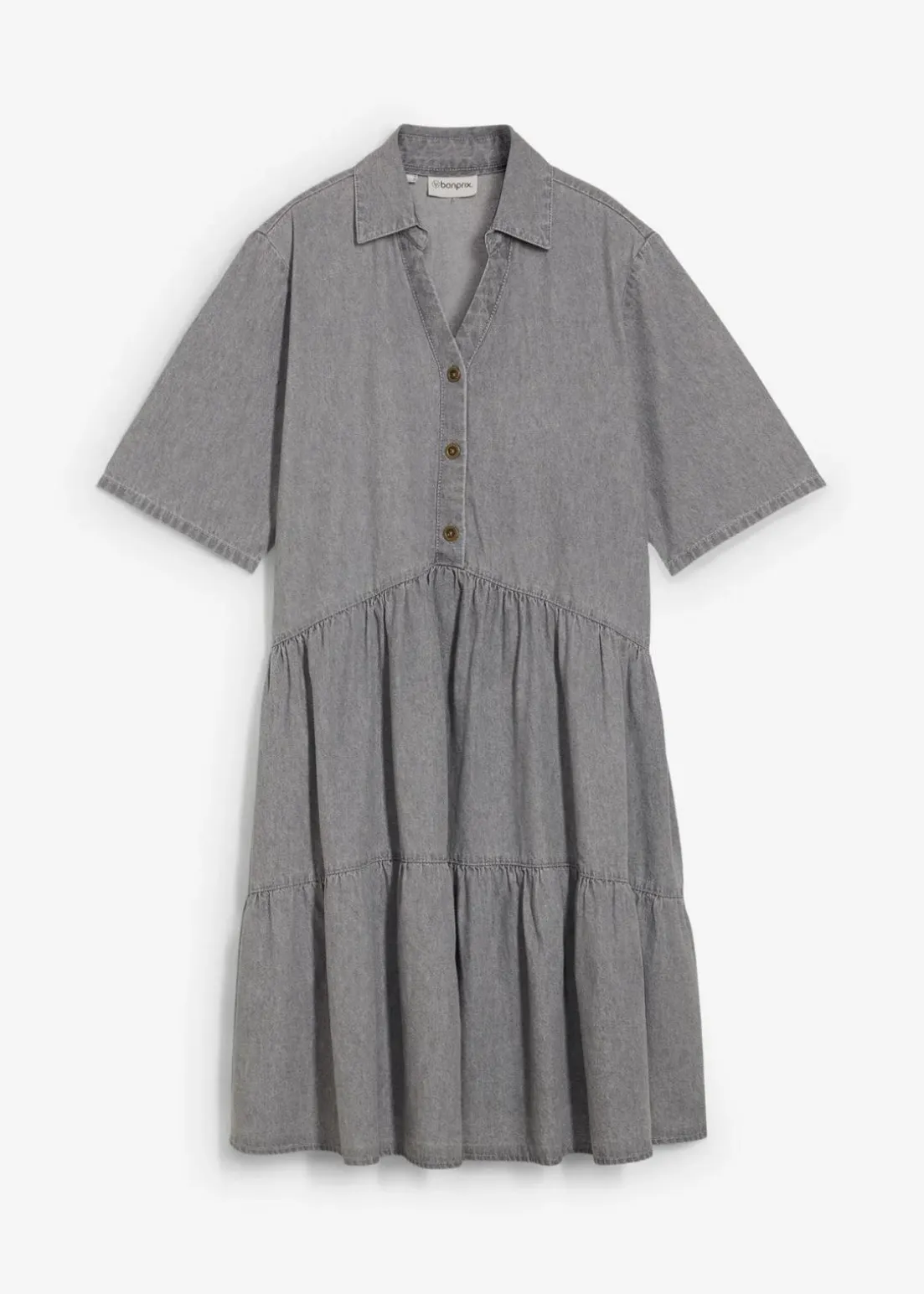 A-förmiges Jeanskleid mit V-Ausschnitt