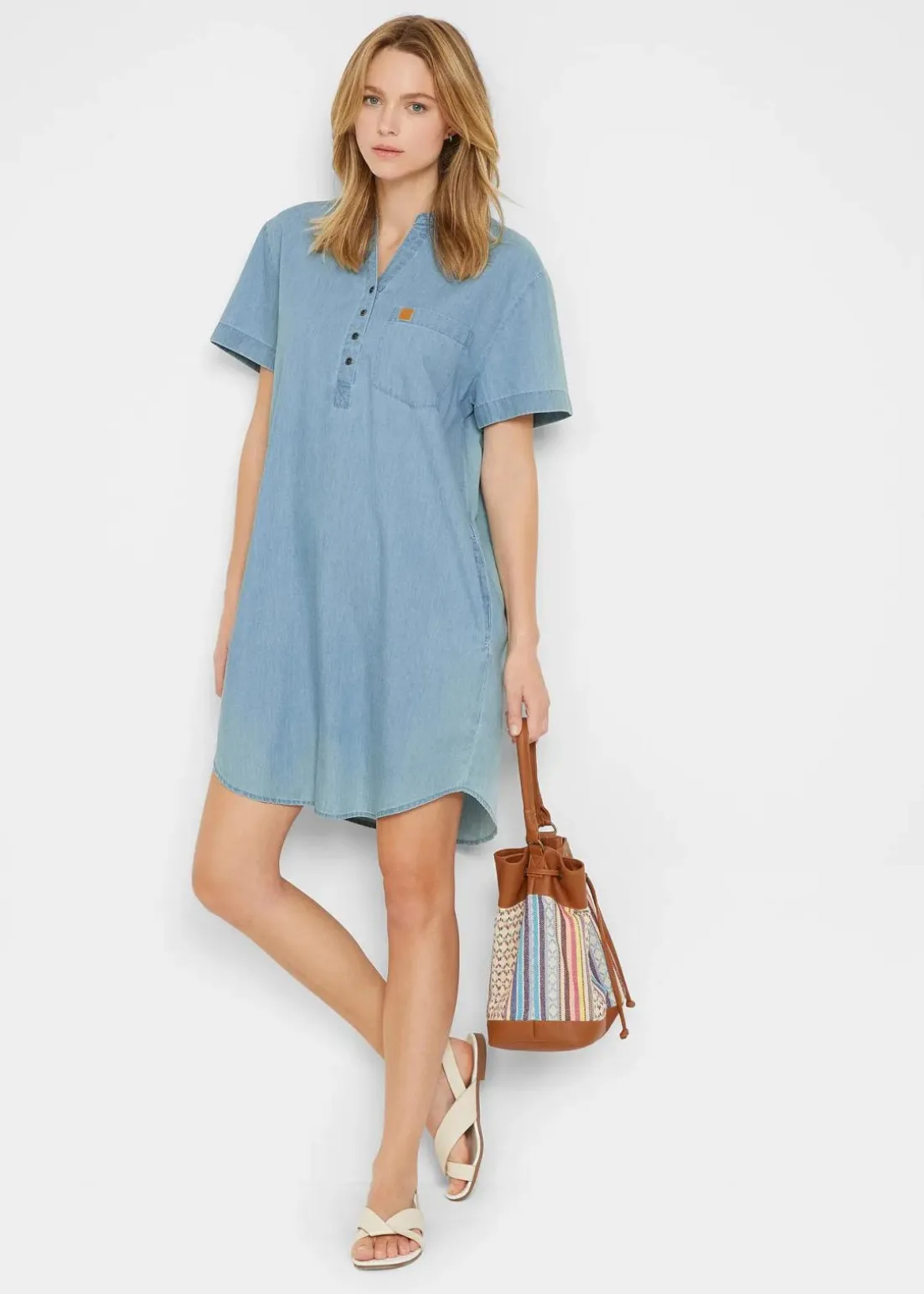 Sommerliches Jeanskleid mit kurzen Ärmeln.