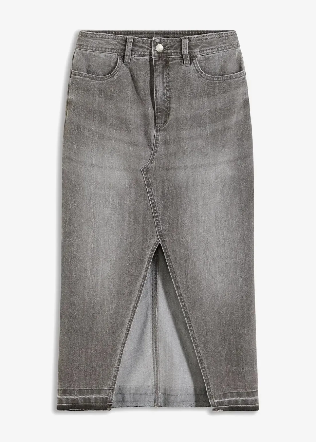 Sommerlicher Jeansrock mit Schlitz und offenem Saum