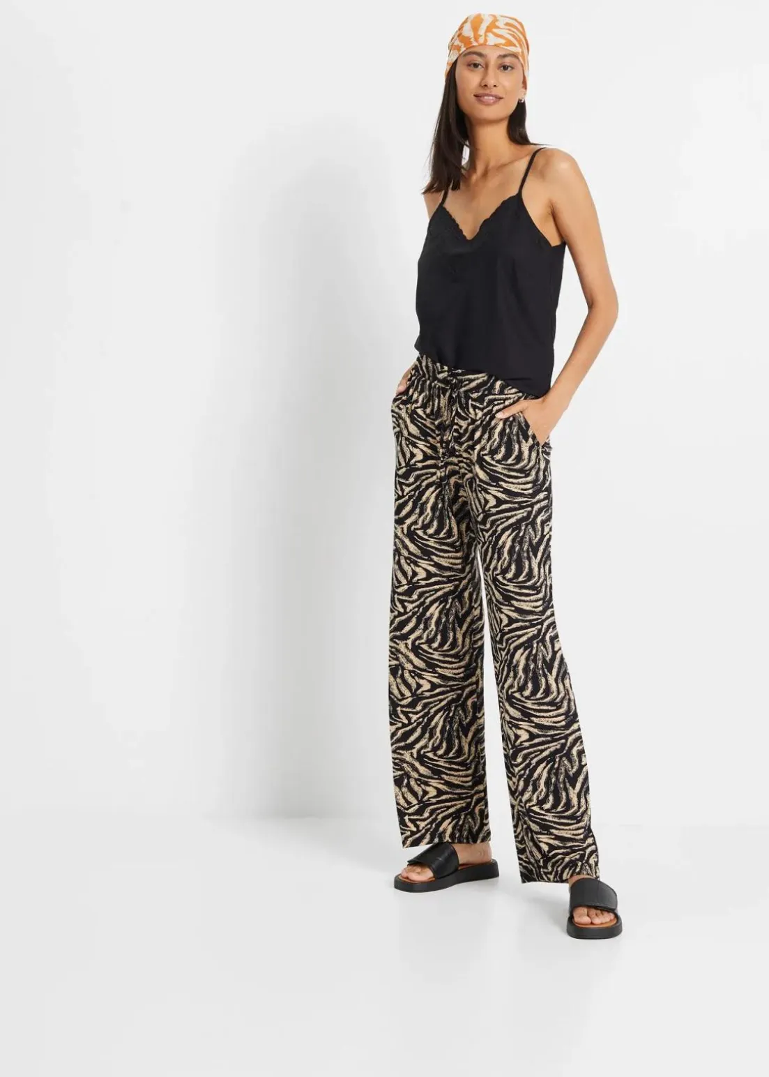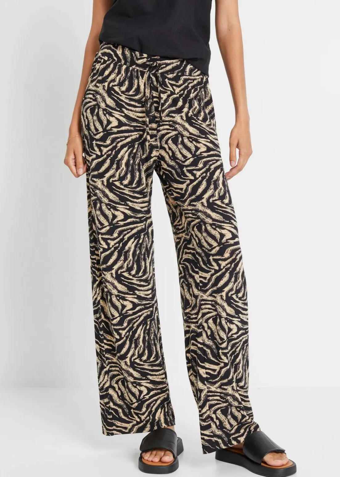 Lockerfallende Viskose-Jerseyhose mit stylischem Print, Taschen und Komfortbund