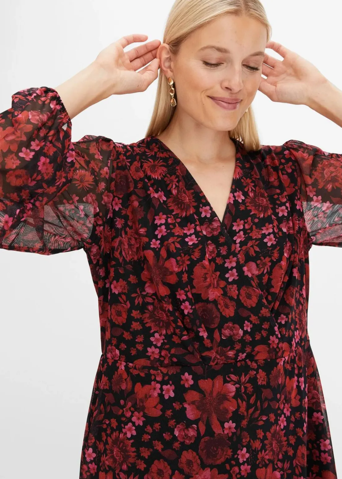 feminines Mesh-Midikleid mit floralem Print