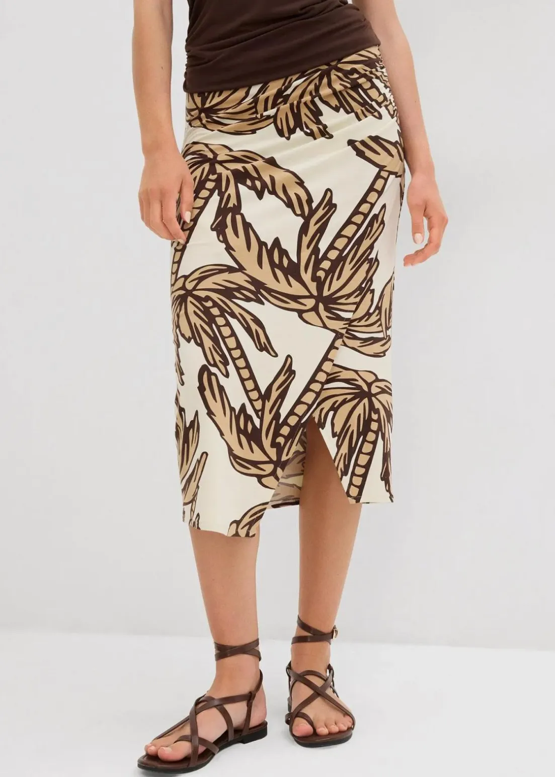 bedruckter Jerseyrock aus softem Viskose-Mix in Midilänge mit seitlichem Reißverschluss