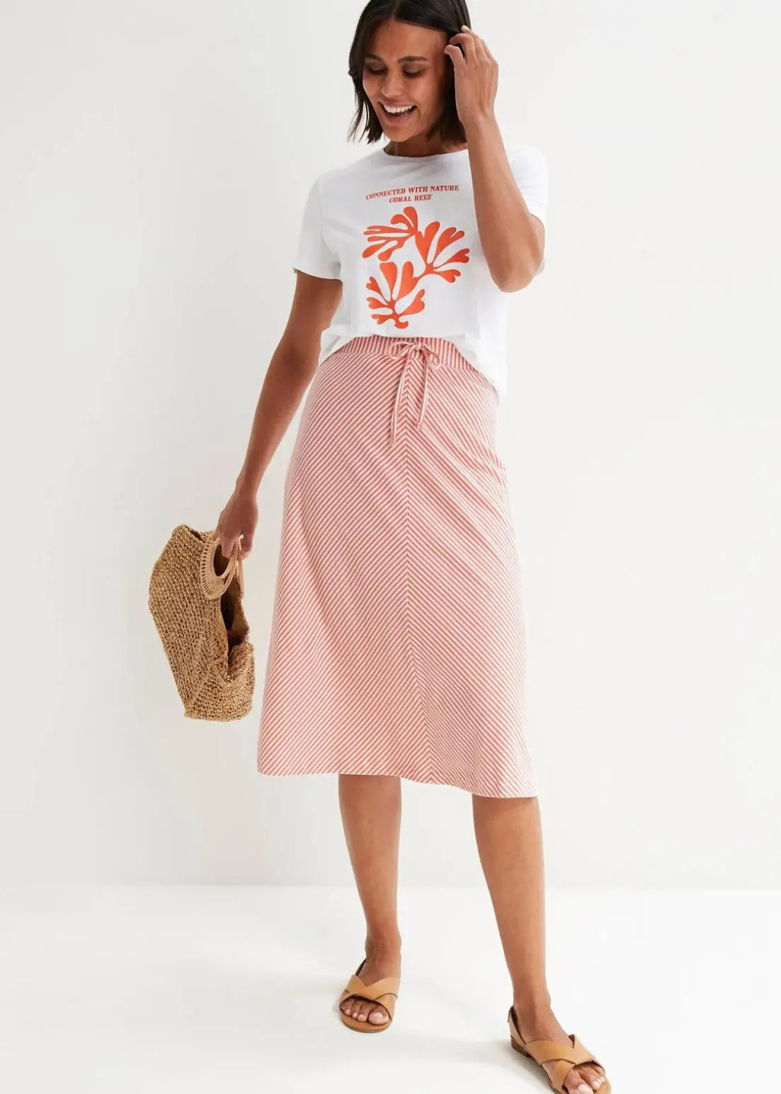 Knieumspielender Rock mit asymmetrischen Streifen