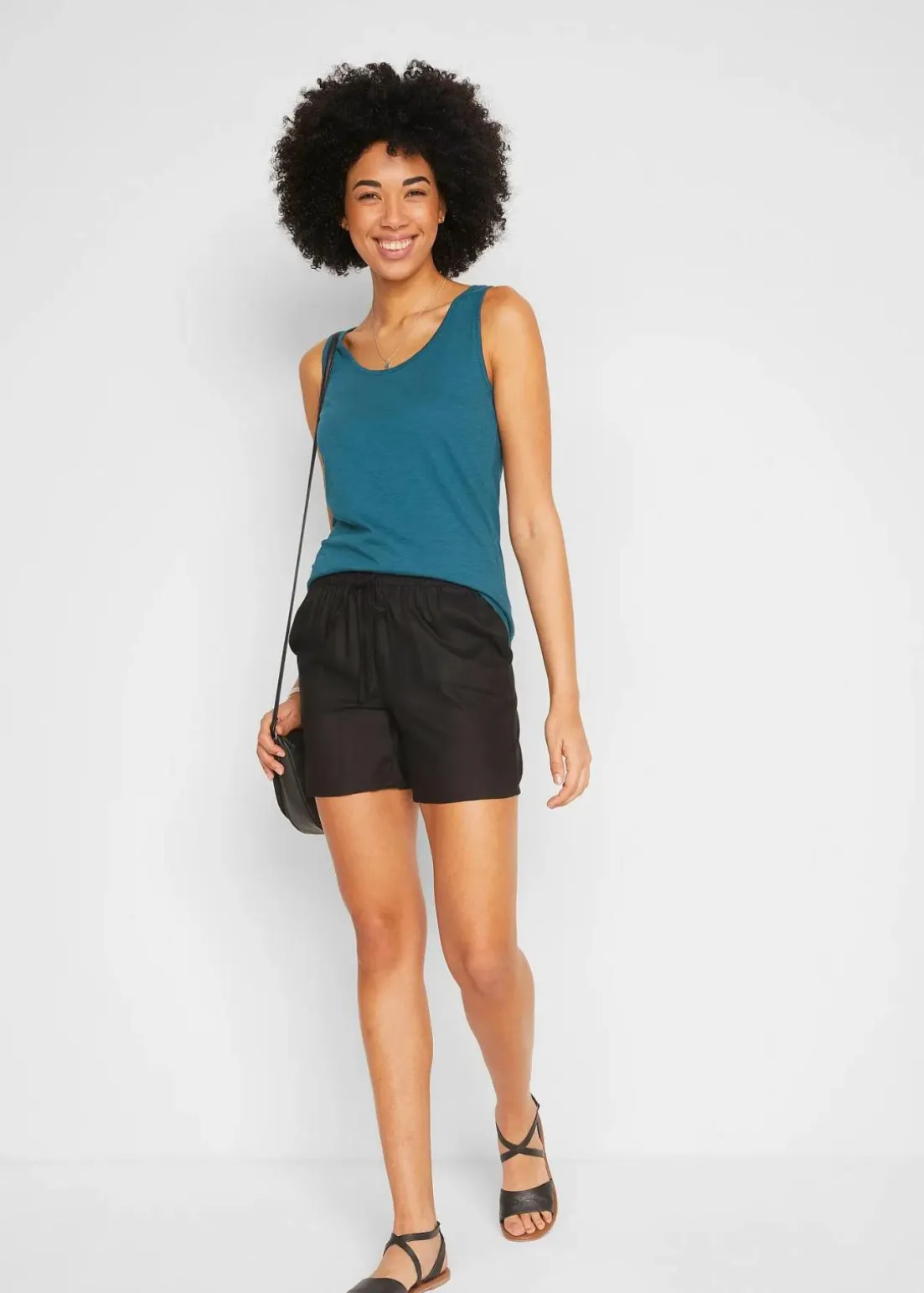 Baumwoll-Top mit Rundhals-Ausschnitt mit dekorativem Rückenausschnitt