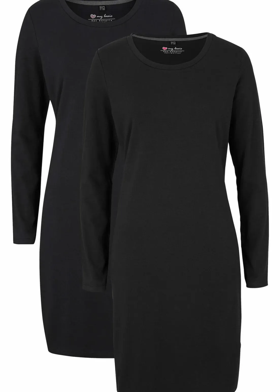 Basic Stretch-Kleid mit Rundhals-Ausschnitt, langarm, Doppelpack