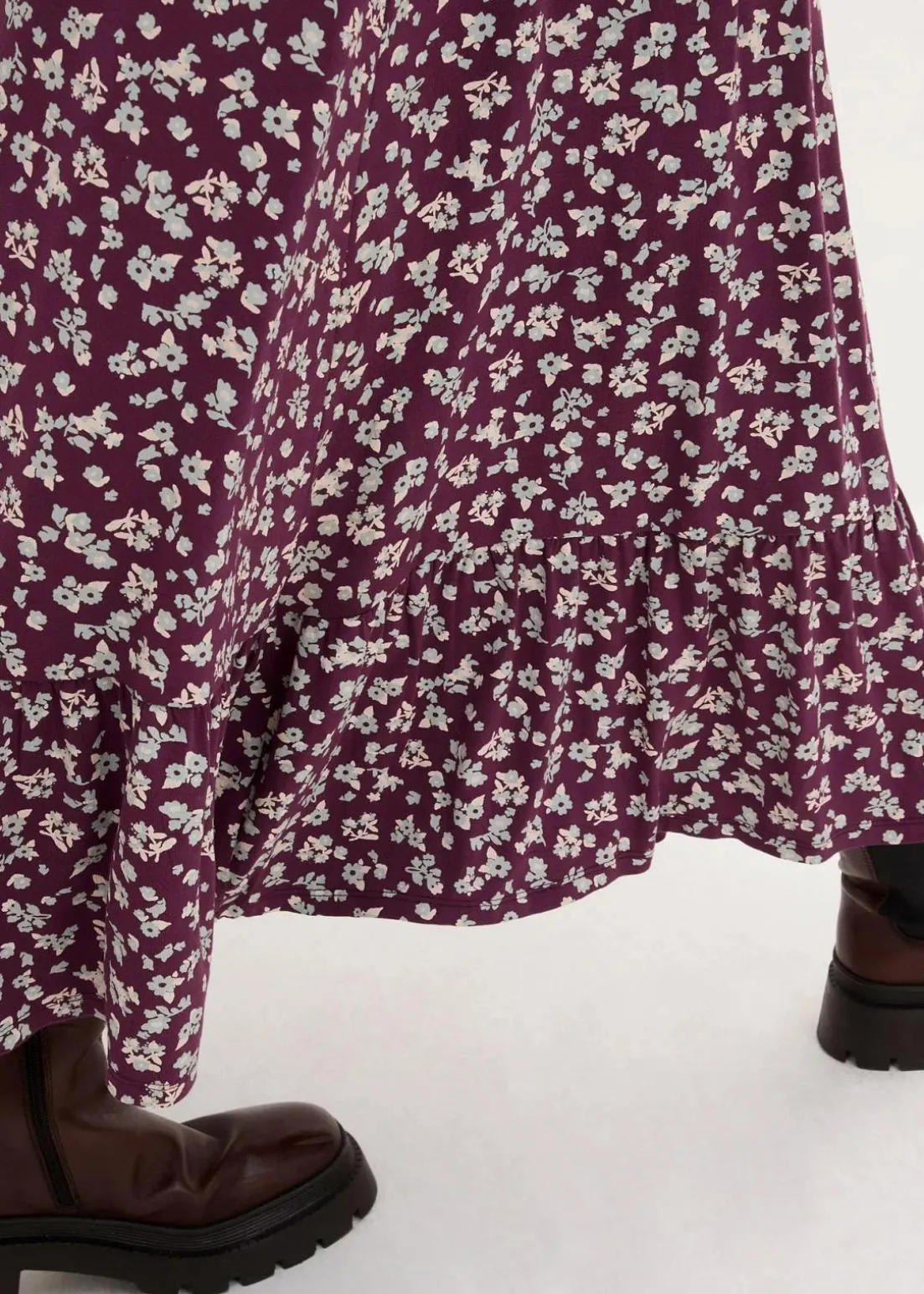 Jersey-Kleid mit Volant am Rock umspielt die Figur