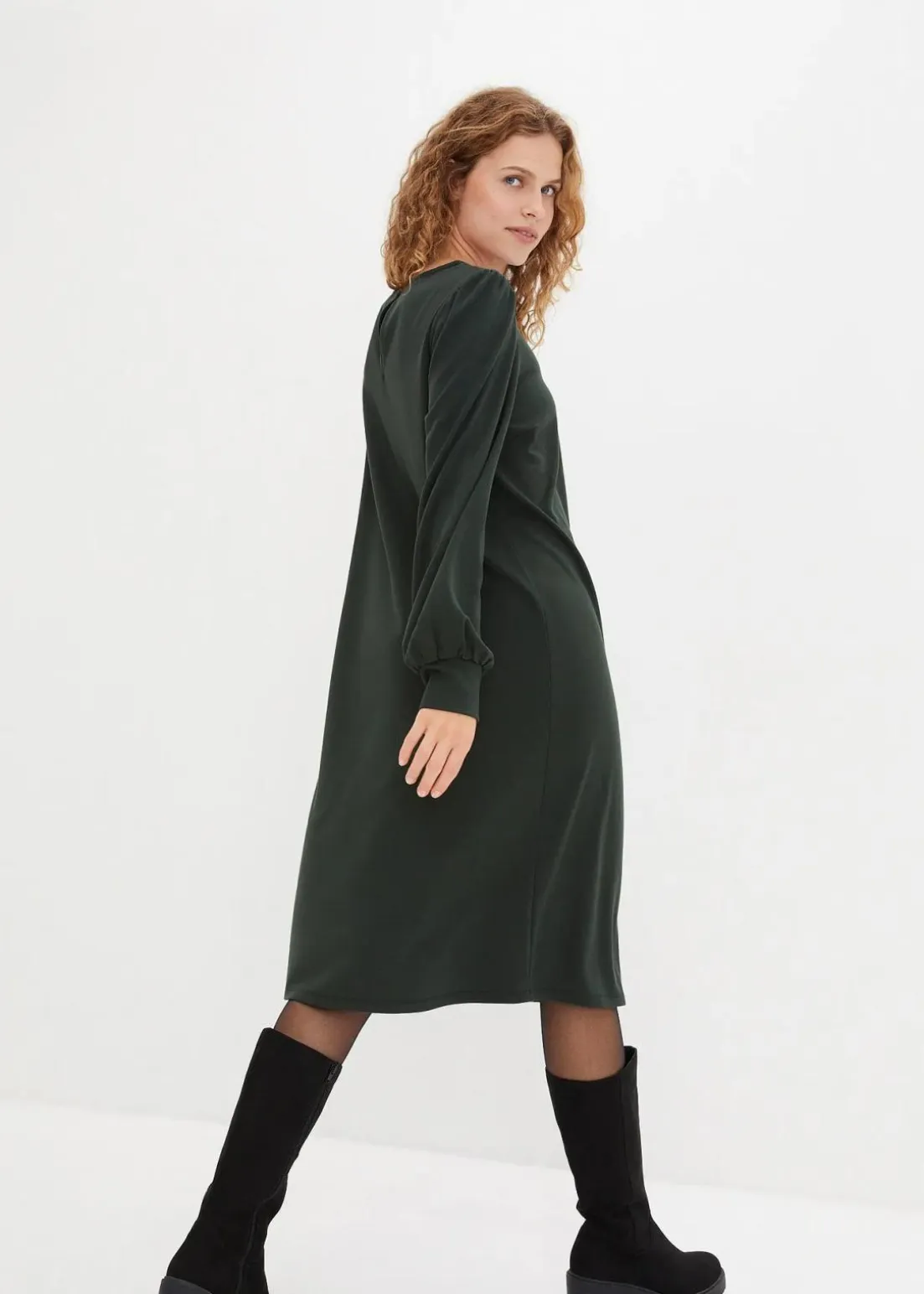 figurumspielendes Kleid aus fester Jersey-Qualität, die Ärmelbündchen sind mit edlen, stoffüberzogenen Knöpfen zu schließen