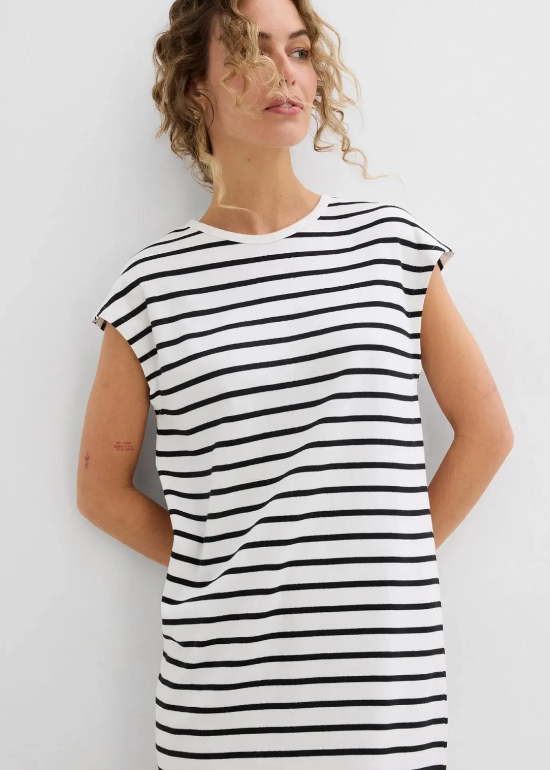Jersey-Kleid mit Rundhalsausschnitt, weiter Passform und einem geraden Saum