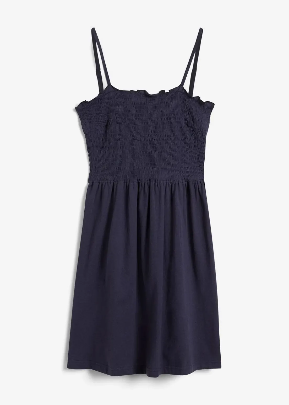 Bequemes Baummwollshirtkleid mit hübschem Smock und verstellbaren Trägern