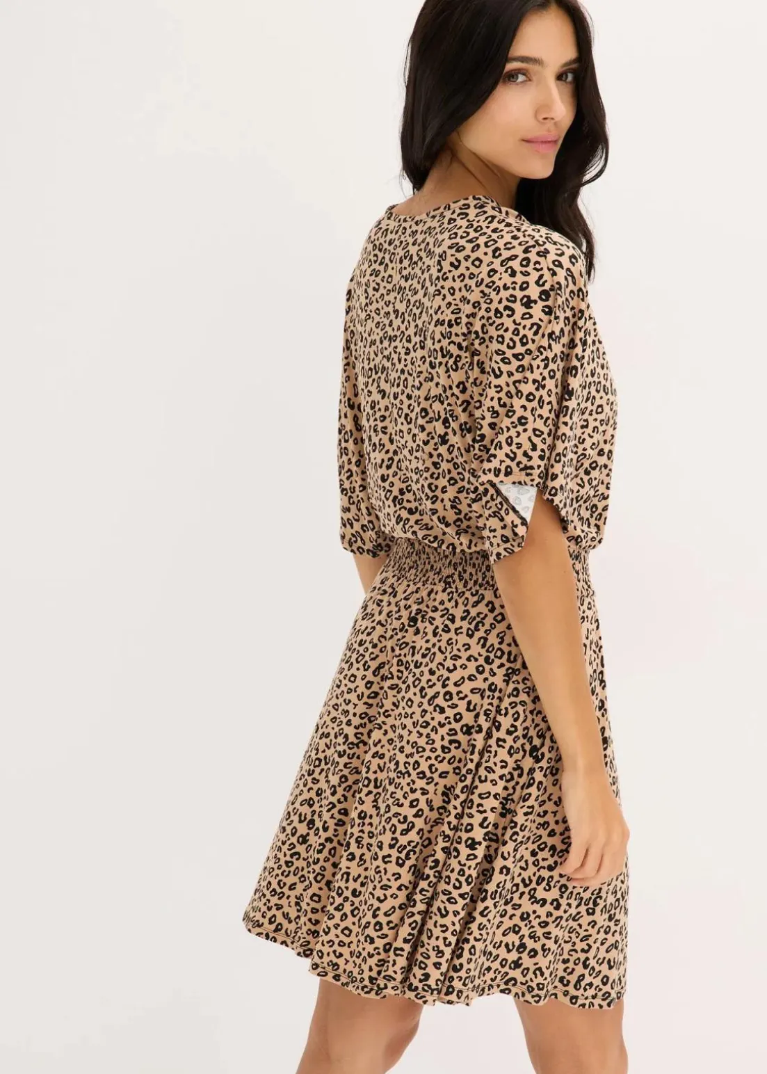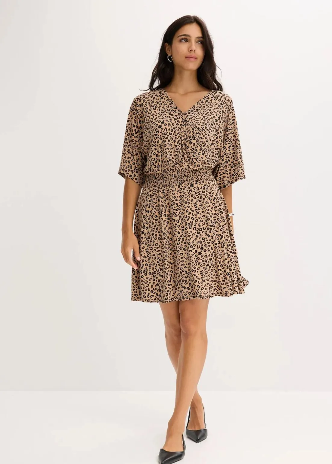 Modernes Kleid im angesagten Animalprint mit Ausschnitt in Wickeloptik