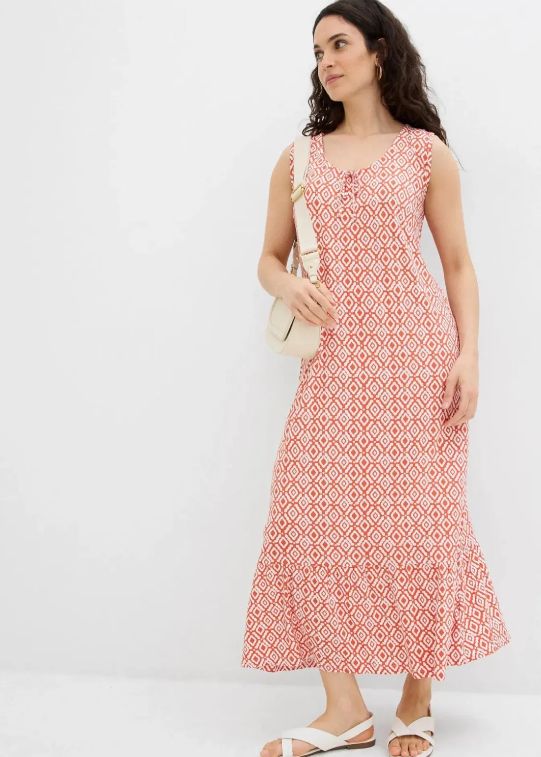 A-Linien-Kleid mit weiter Passform. Mit Kordelzug am Ausschnitt und Raffung auf Kniehöhe.