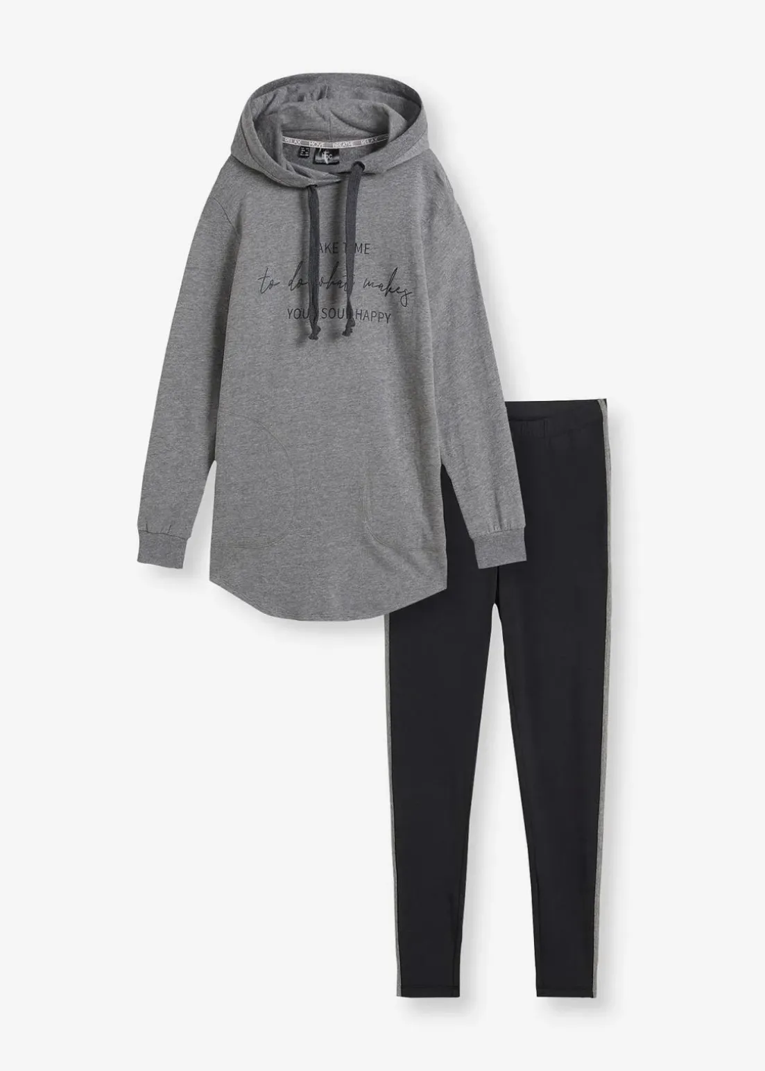 Jogginganzug aus extra langem, innen weich angerautem Oversize-Sweatshirt und knöchelfreier Leggings (2-teilig)