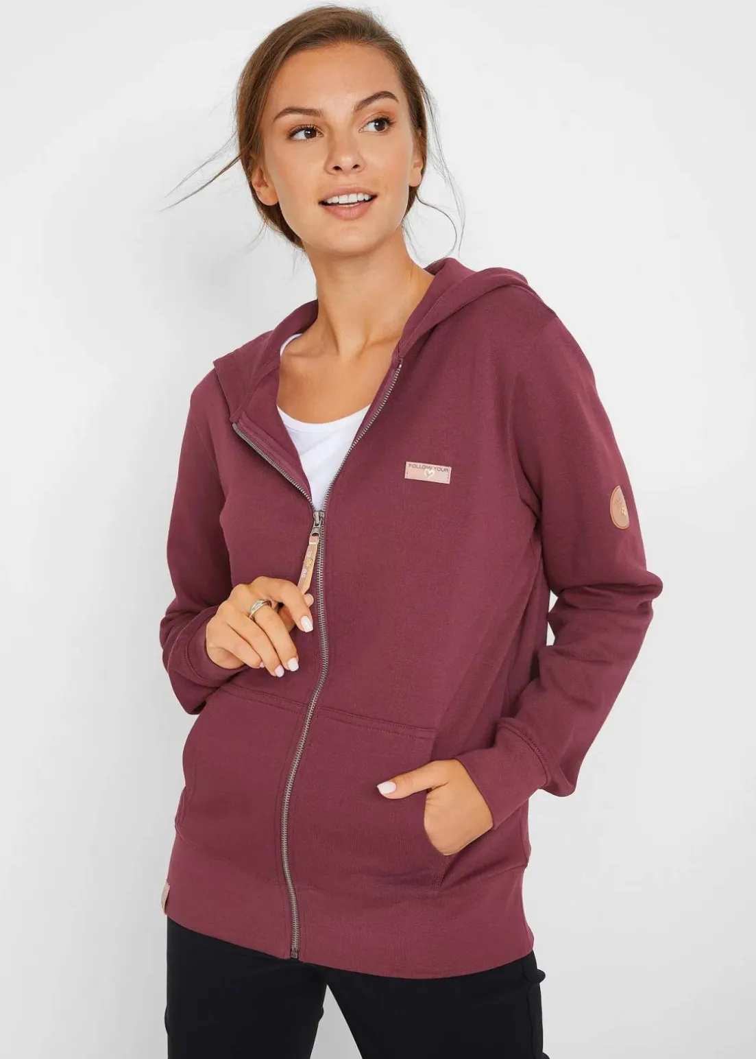 Kapuzenjacke mit Kängurutaschen und Lederimitat-Details