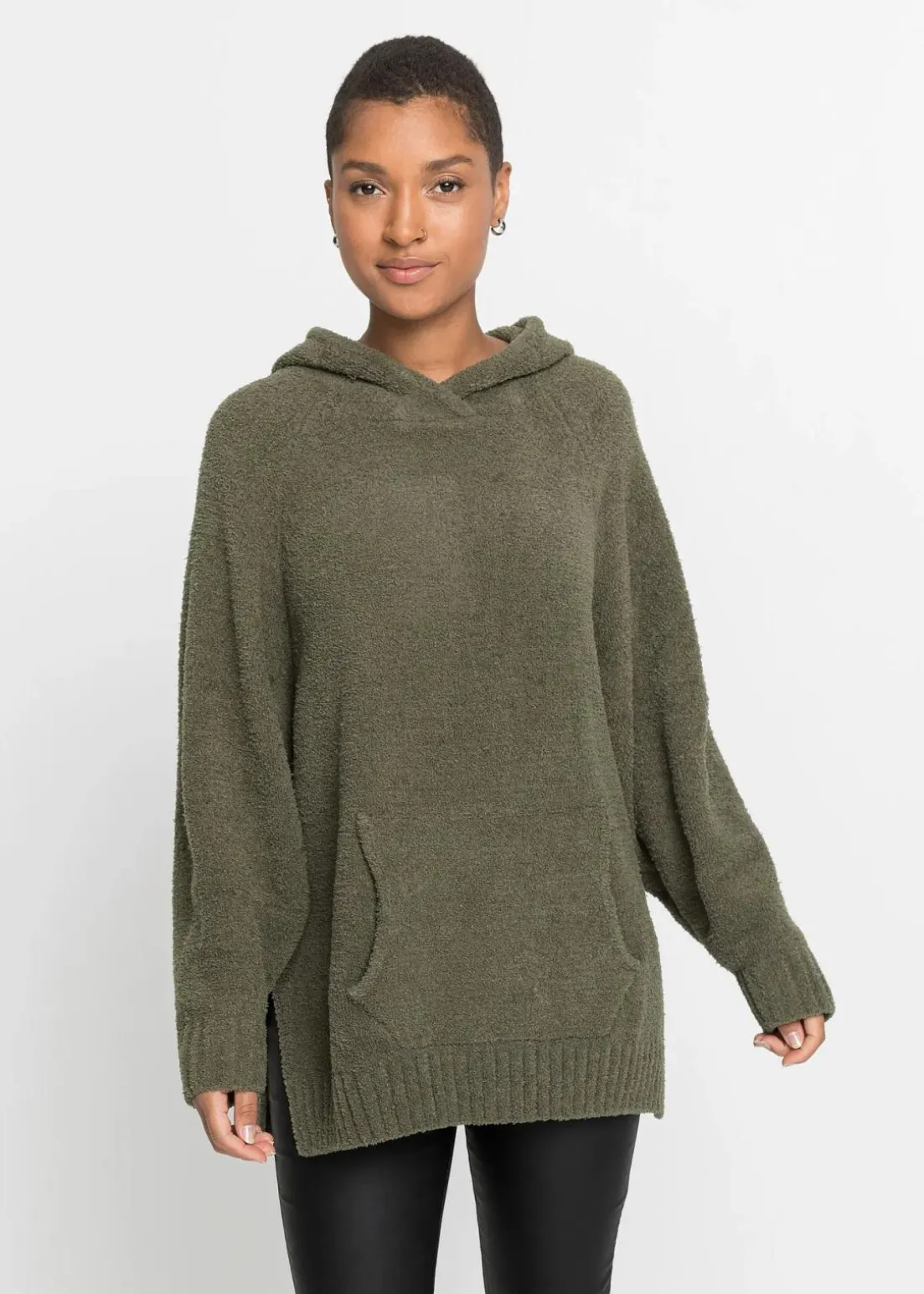 Teddy-Pullover mit voderer Tasche, weit geschnitten