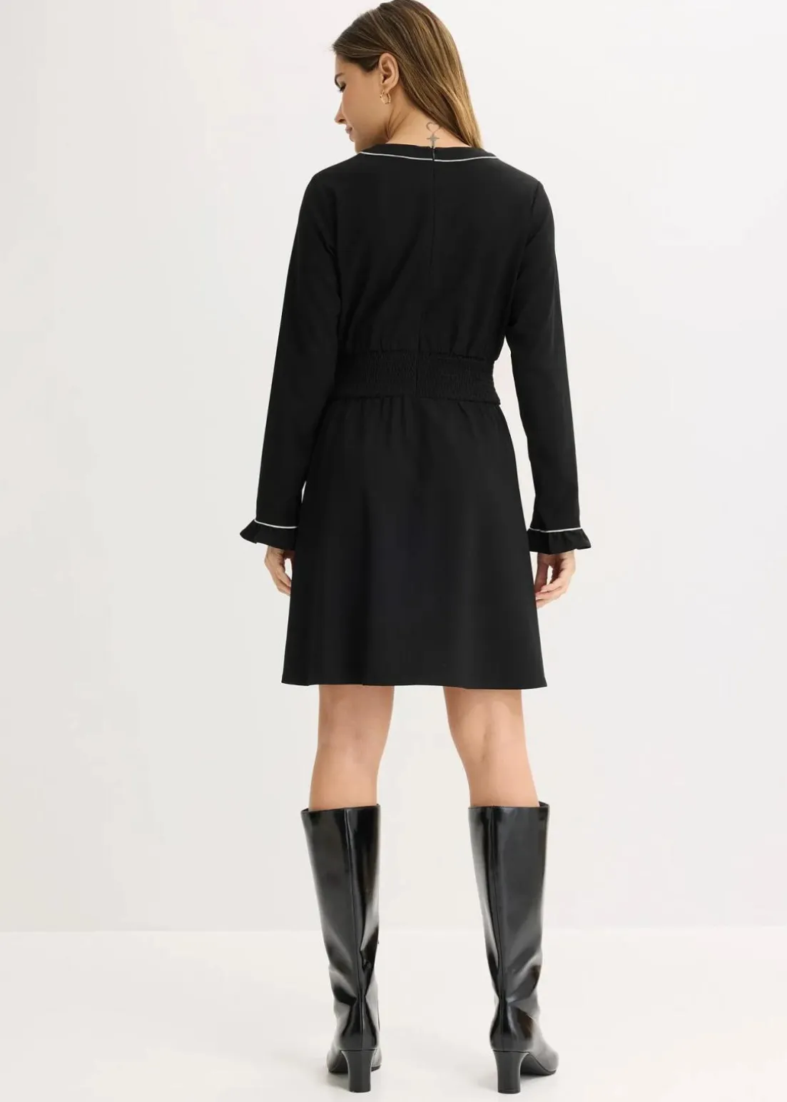 Kurzes Kleid mit Rüschen und Paspellierungen