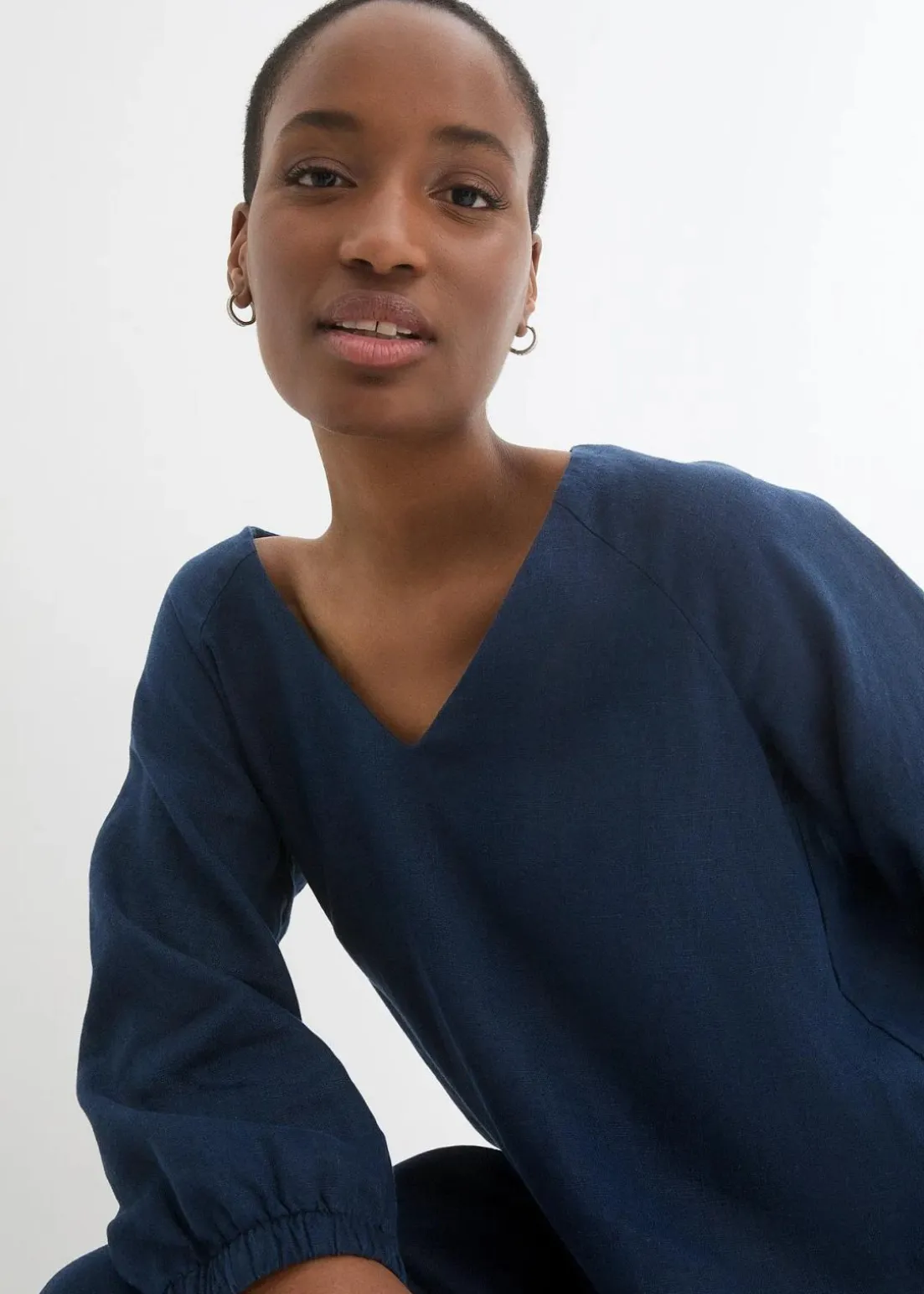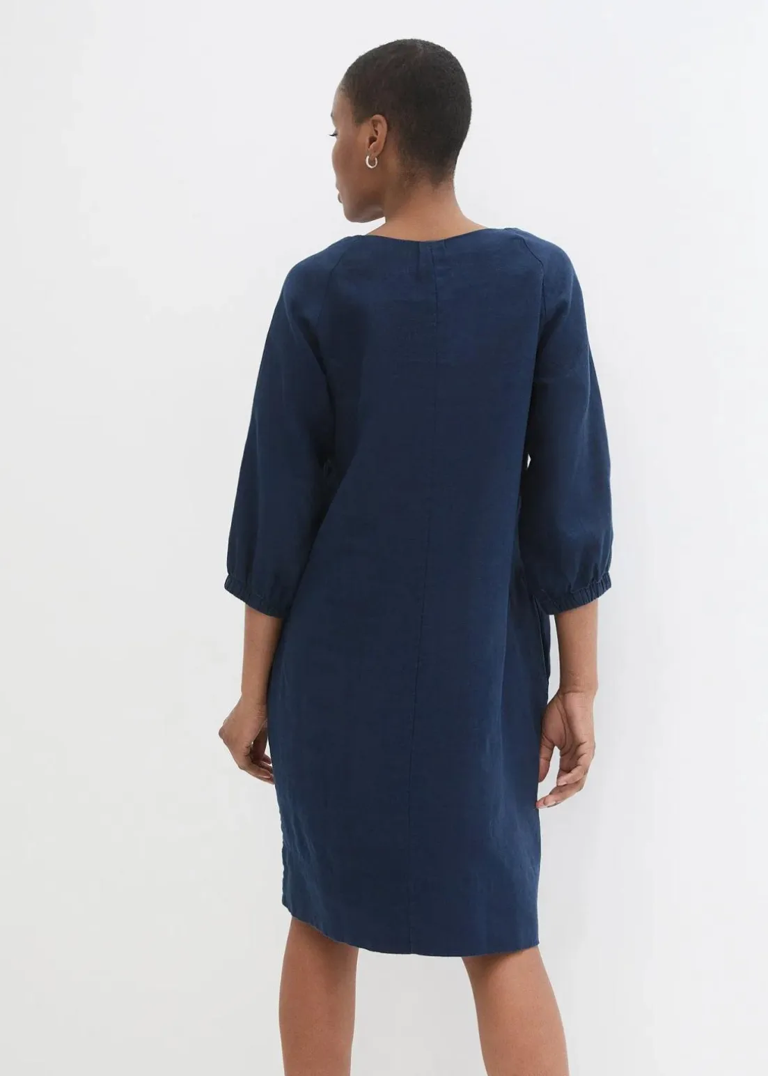 Kurzes Leinenkleid mit lockerer Passform und Raglanärmeln