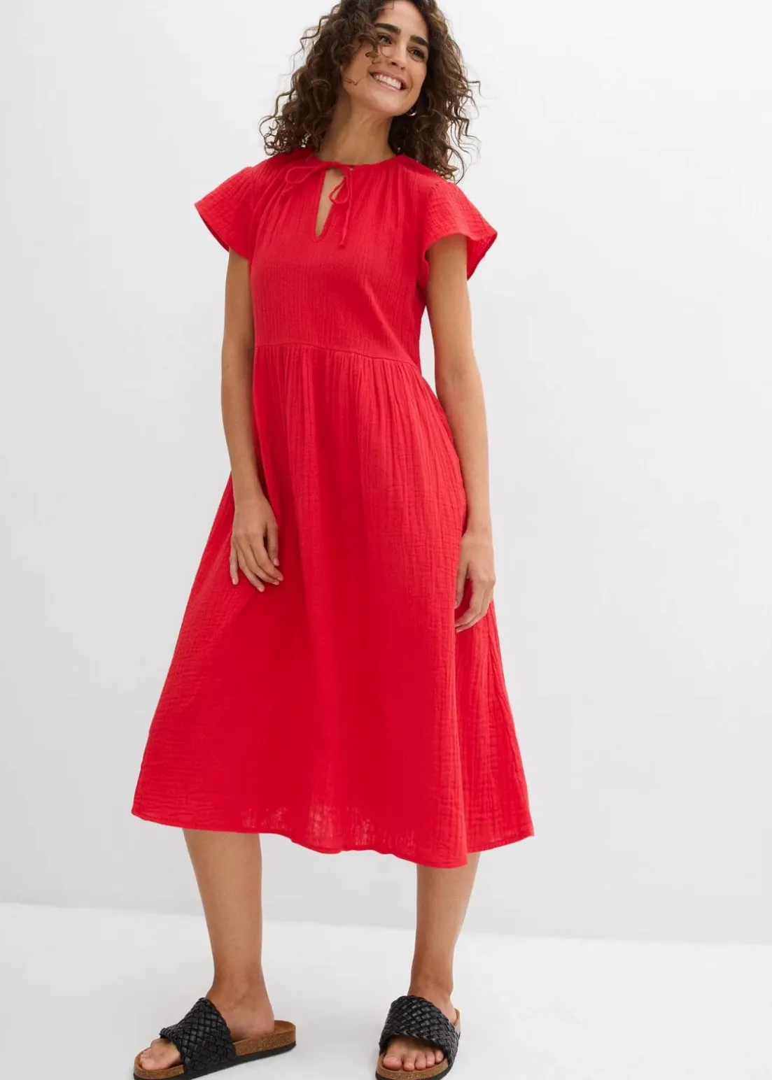 ausgestelltes Musselinkleid aus reiner Baumwolle mit V-Ausschnitt