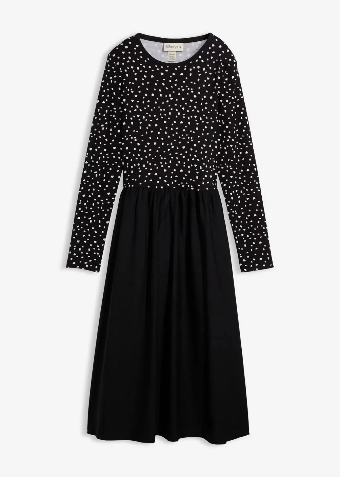 Jerseyqualität aus Baumwolle am Oberteil sowie gewebte Baumwollqualität an der Rockpartie