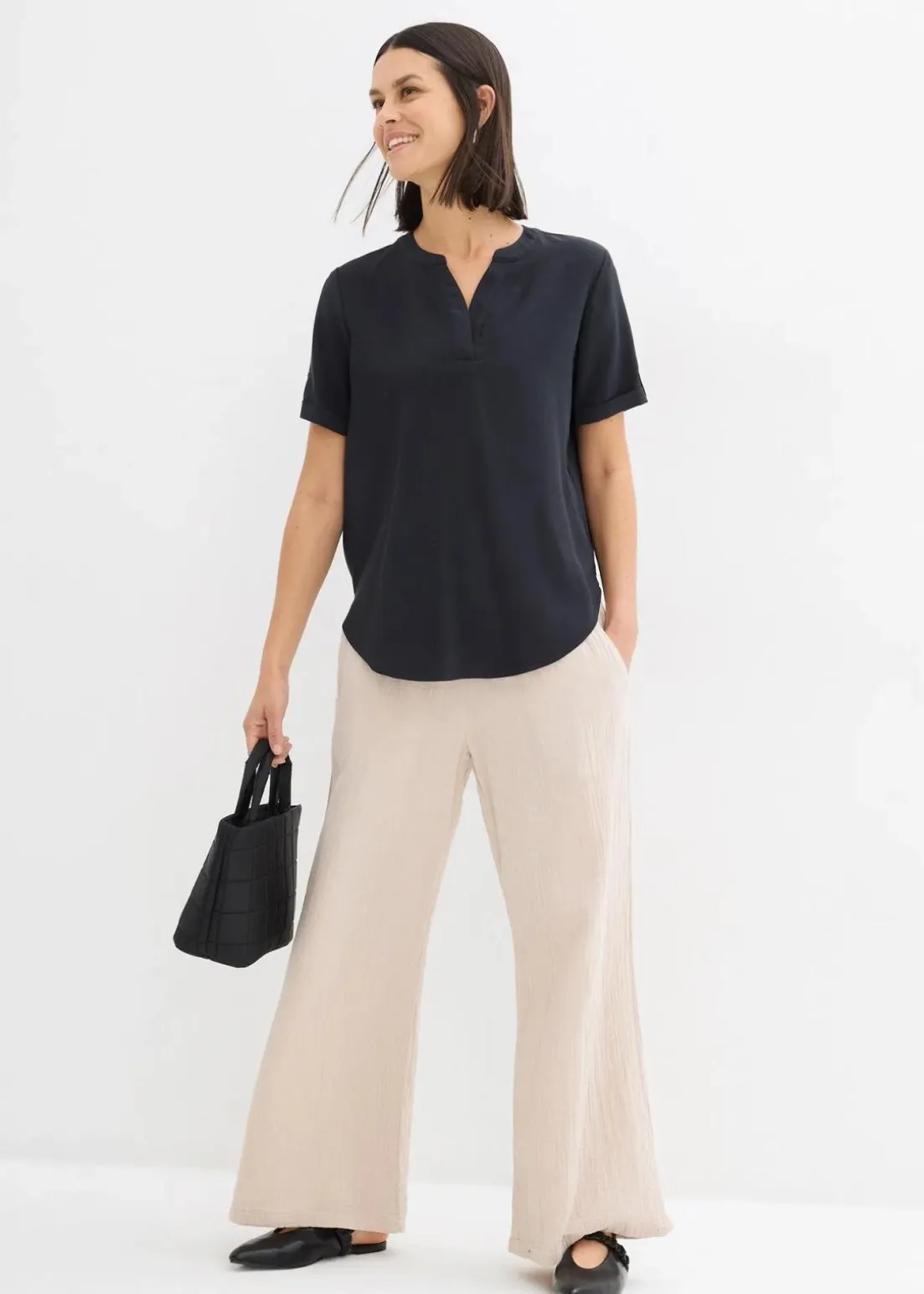 Loose Fit Kurzarmbluse aus weichem Viskose-Mix