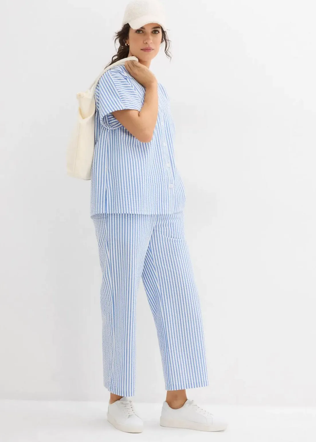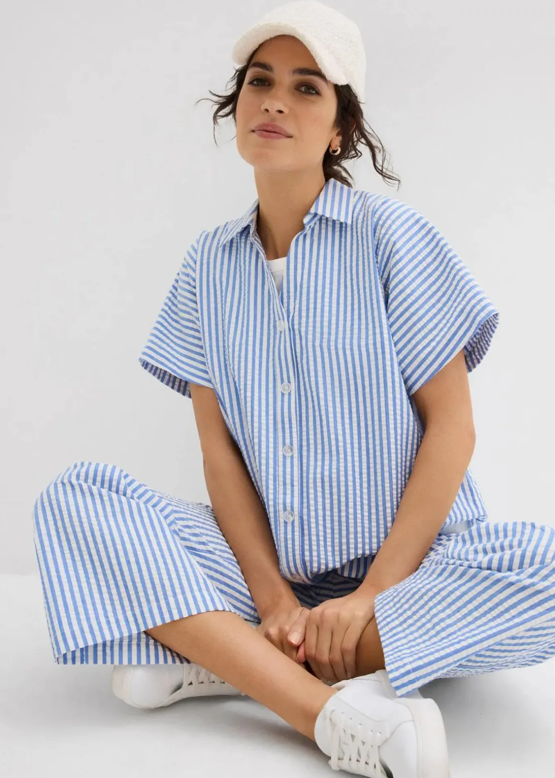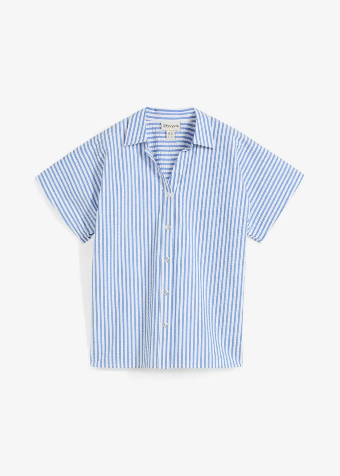 Kurzarmbluse aus leichtem Strukturmaterial mit Knopfleiste. Weite Passform.