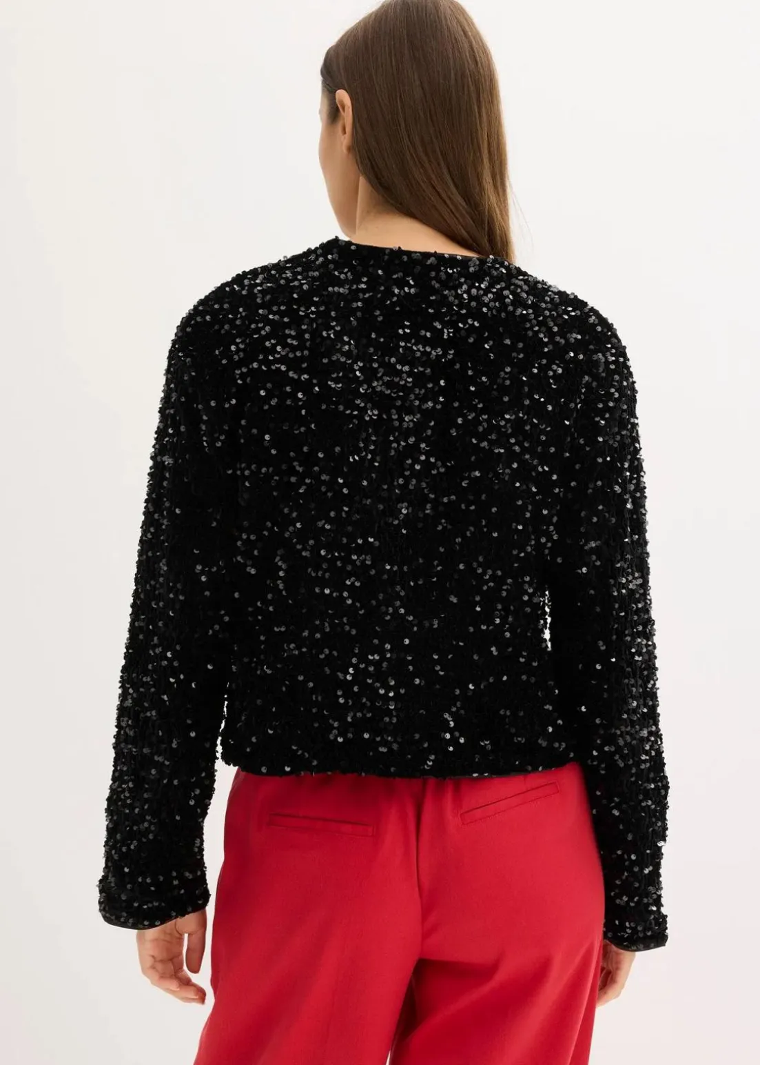 modische kurze Pailletten-Jacke mit Schleifen-Verschluss vorne. Gefüttert.