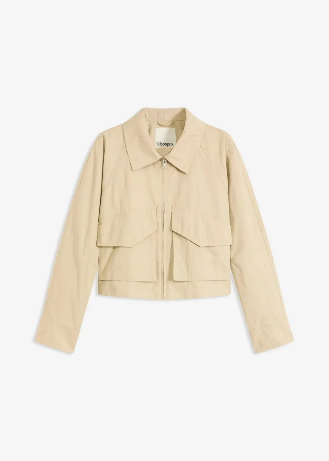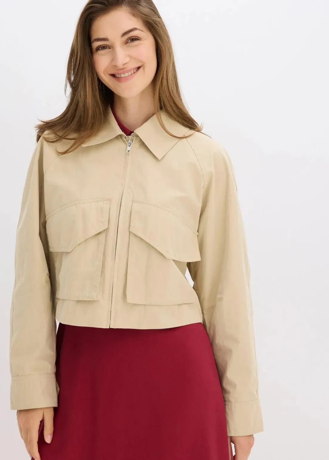 Kurze Trenchjacke mit Reißverschluss, aufgesetzten Taschen sowie einem Kentkragen