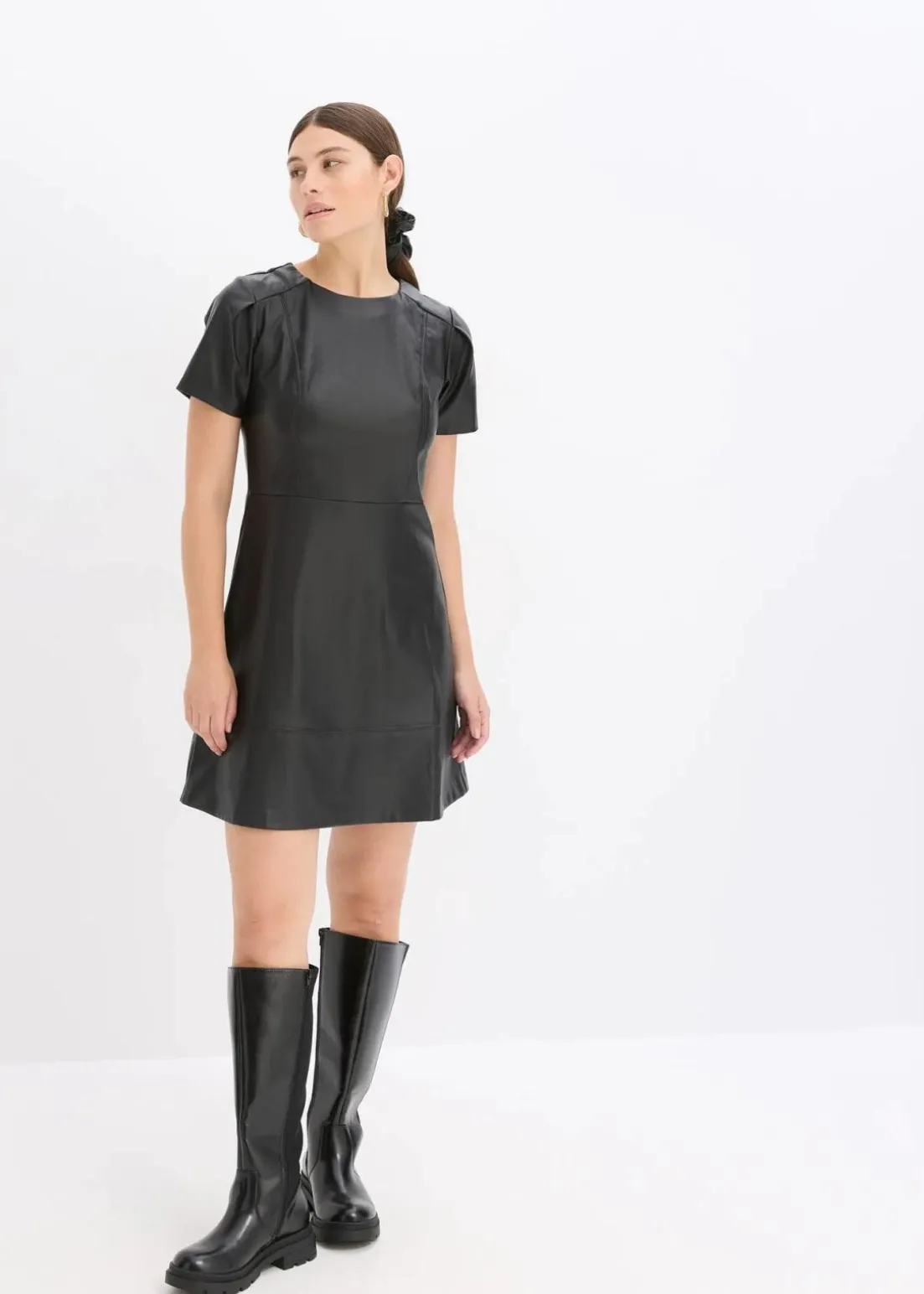 Minikleid aus softem Lederimitat mit kurzen Tulpen-Ärmeln
