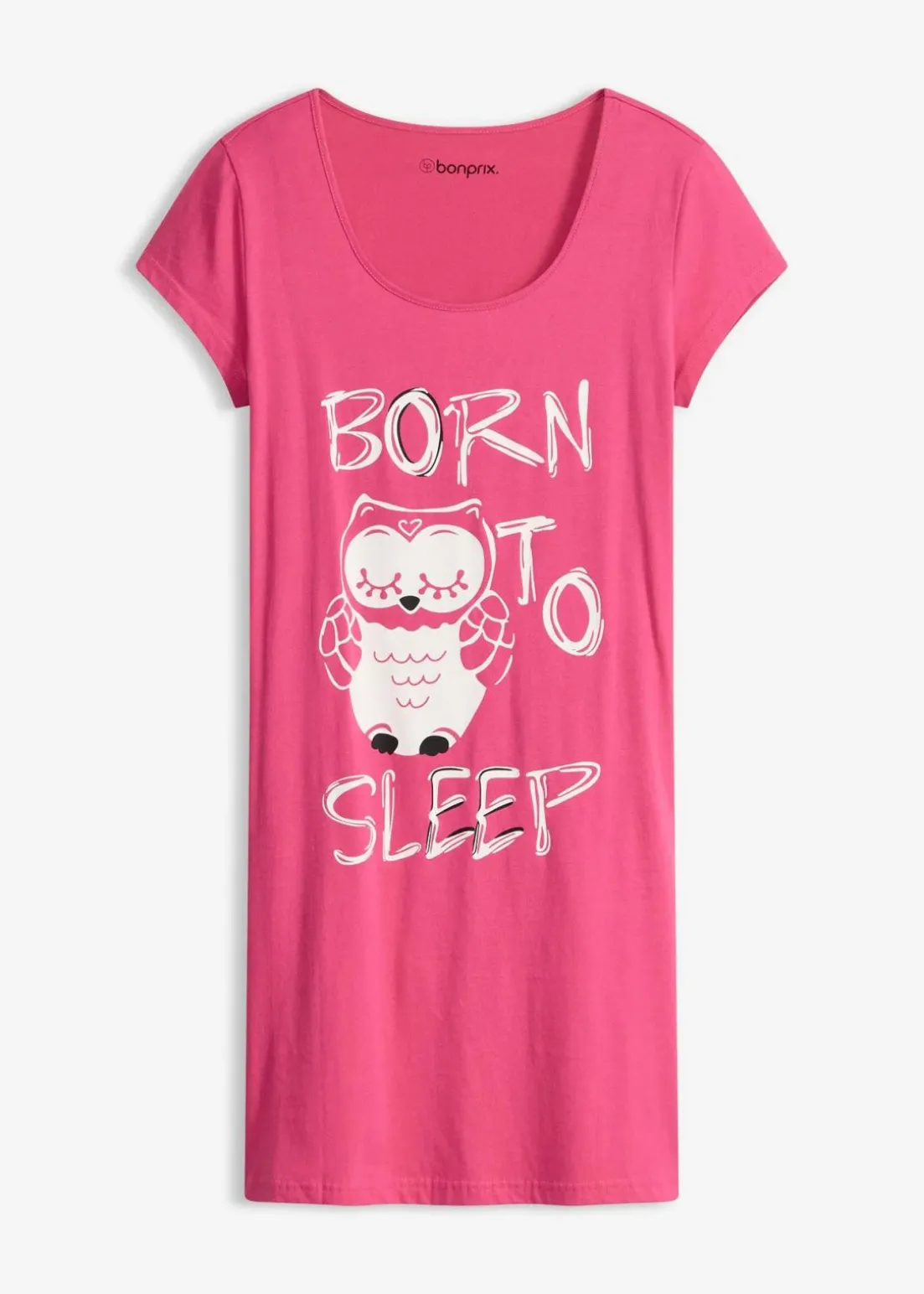 Das praktische Nachthemd mit kurzen Ärmeln präsentiert sich mit einem modischen Druck auf der Vorderseite.Der weite Ausschnitt sorgt für Komfort beim Schlafen. Das Longshirt liegt durch seinen taillierten Schnitt angenehm auf der Haut. Es gehört mit seinem bequemen Stoff zu den Basics in jedem Kleiderschrank.