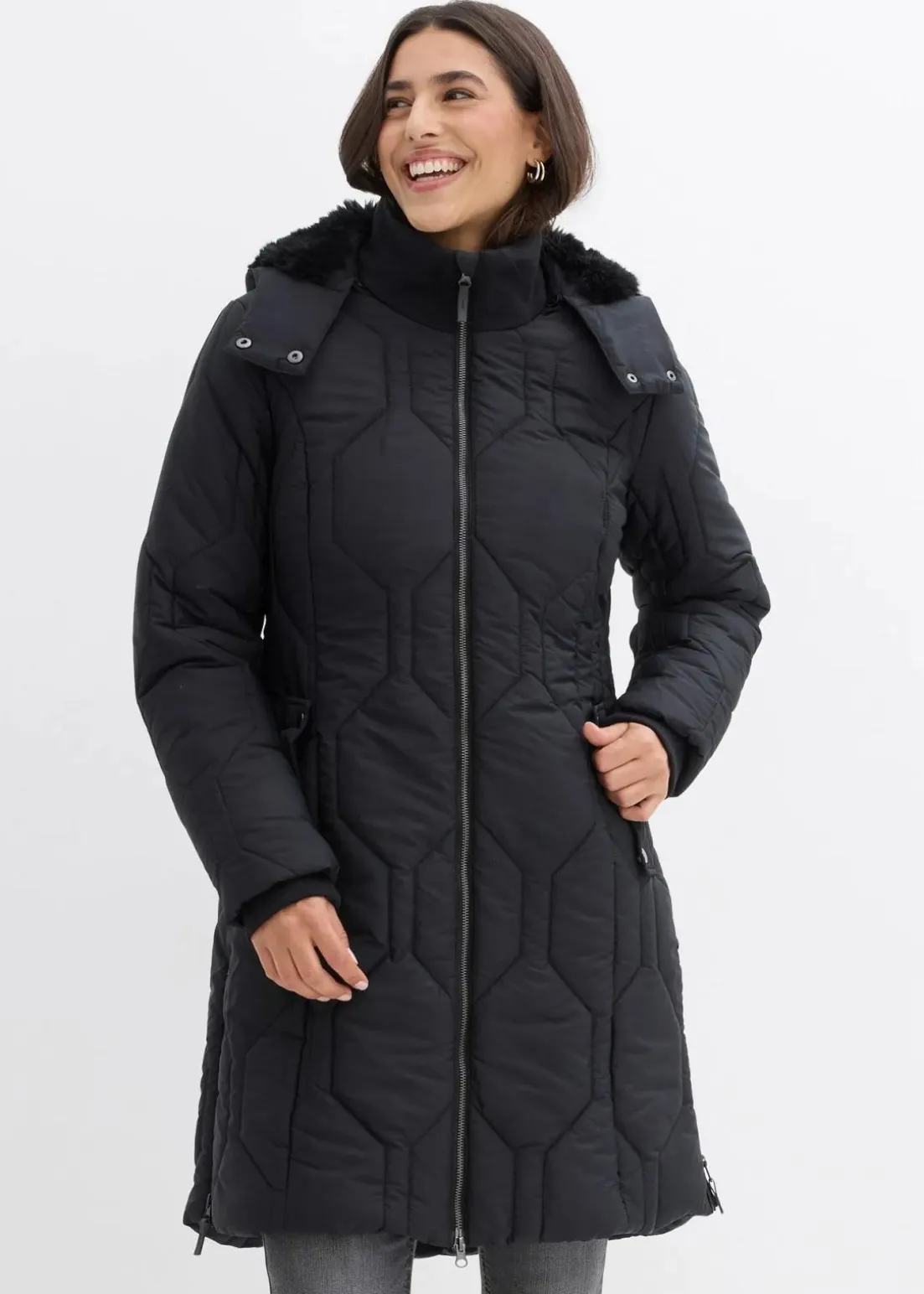 Modischer Kurzmantel mit Kapuze in Steppmuster