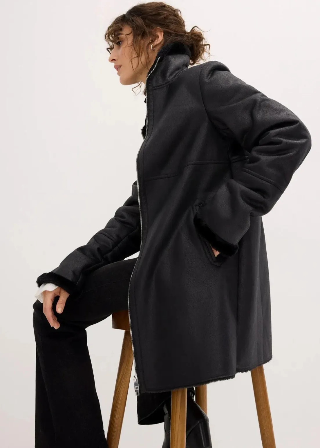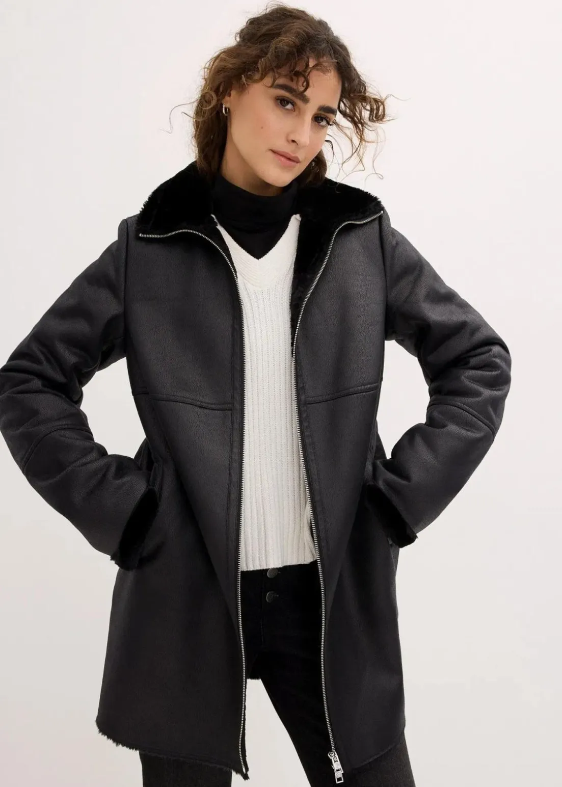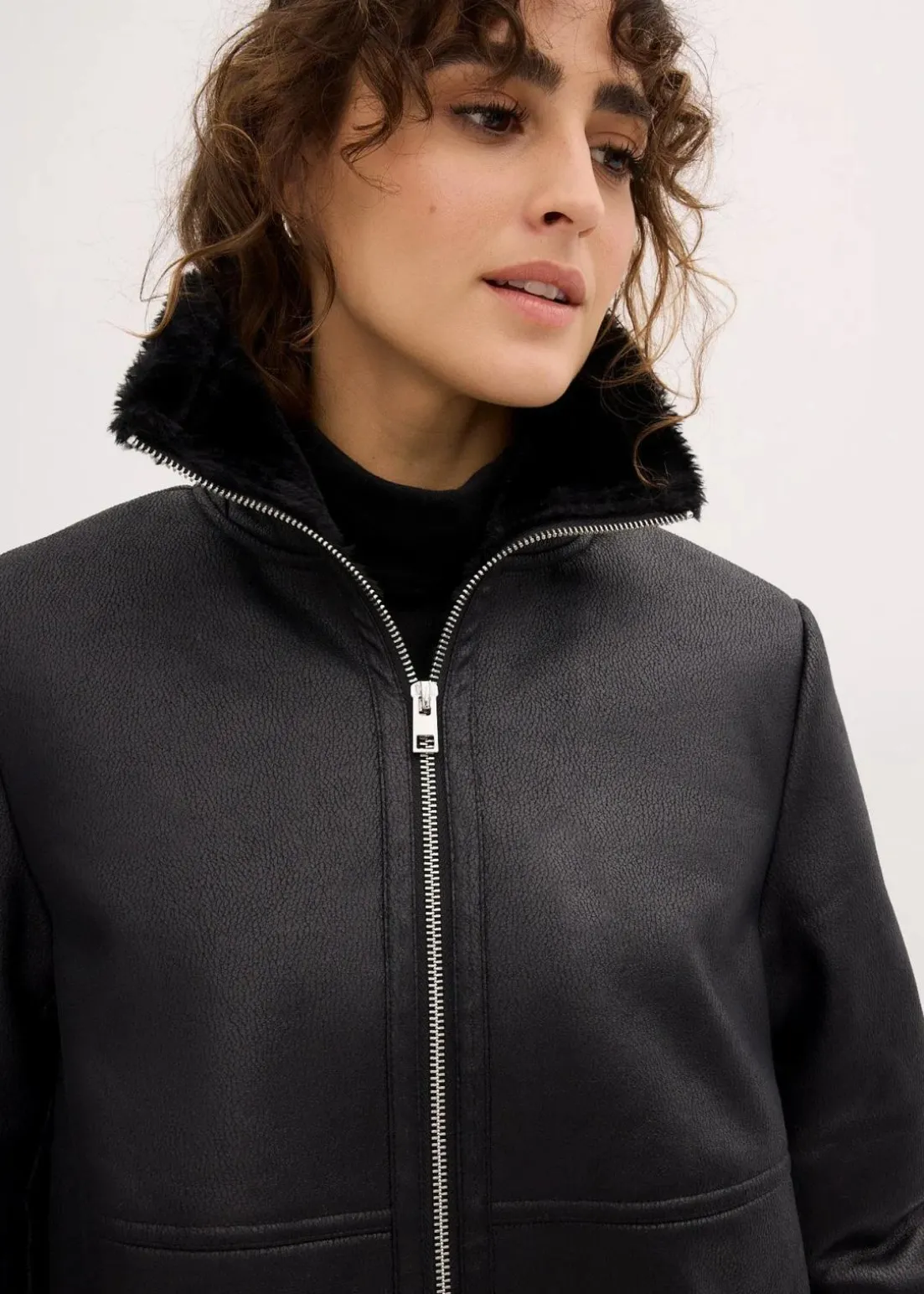 Bequeme Lammfellimitat-Jacke mit einem Stehkragen und Taschen. Nicht maschinenwaschbar. Bitte nur chemisch Reinigen.