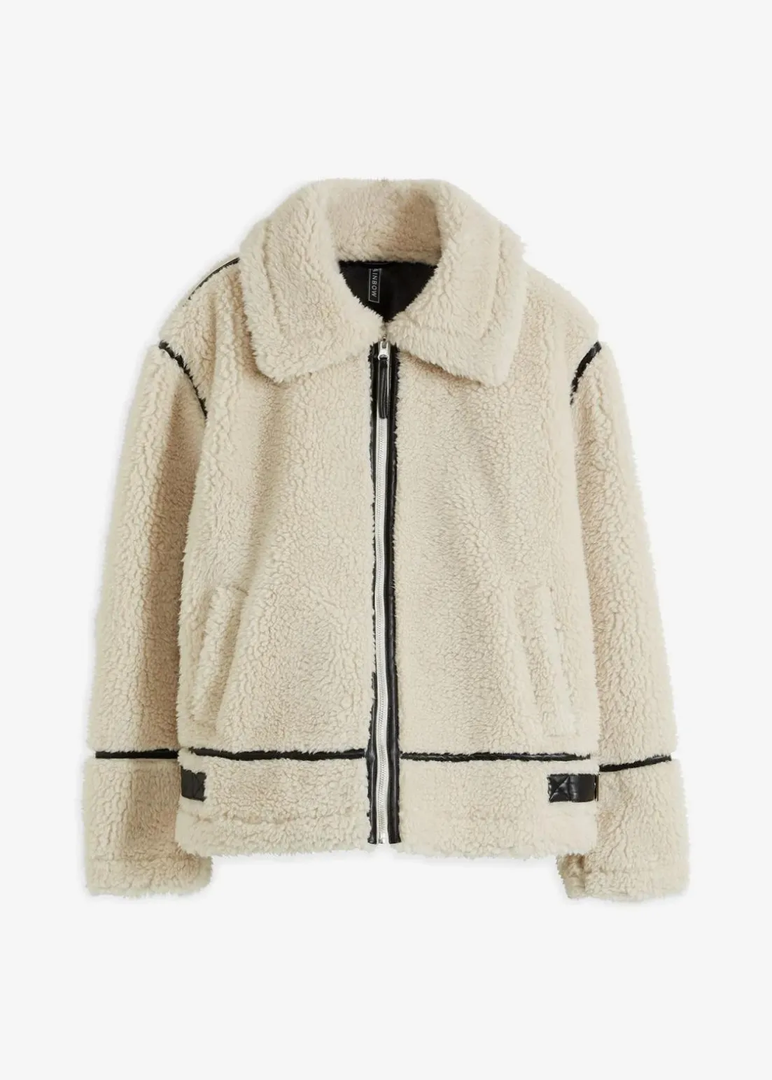 Jacke aus Lammfellimitat mit Lederdetails