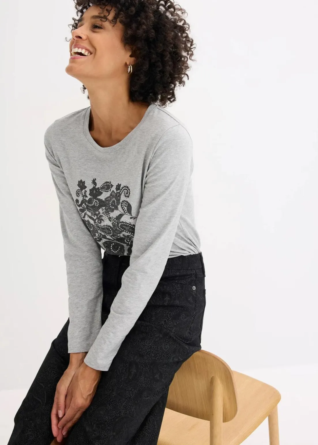 schickes Langarmshirt mit dekorativem Print
