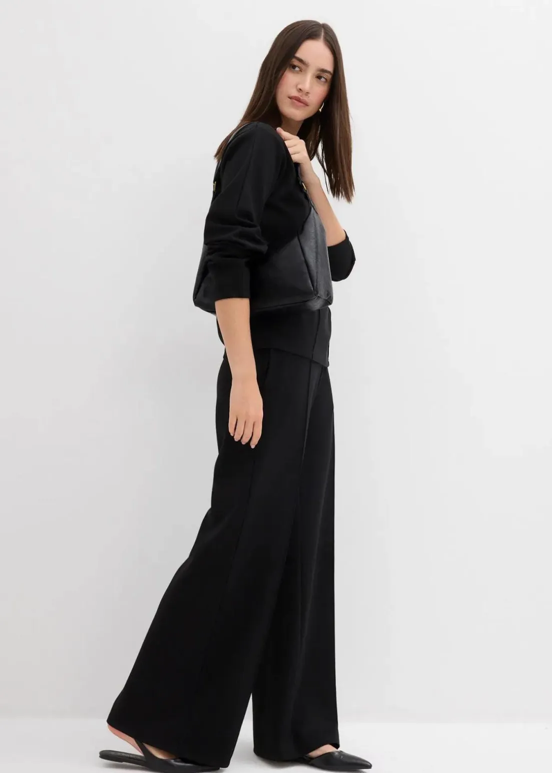 Langarmshirt aus Punto die Roma mit Rundhalsausschnitt sowie Abnähern vorne und an den Ärmeln