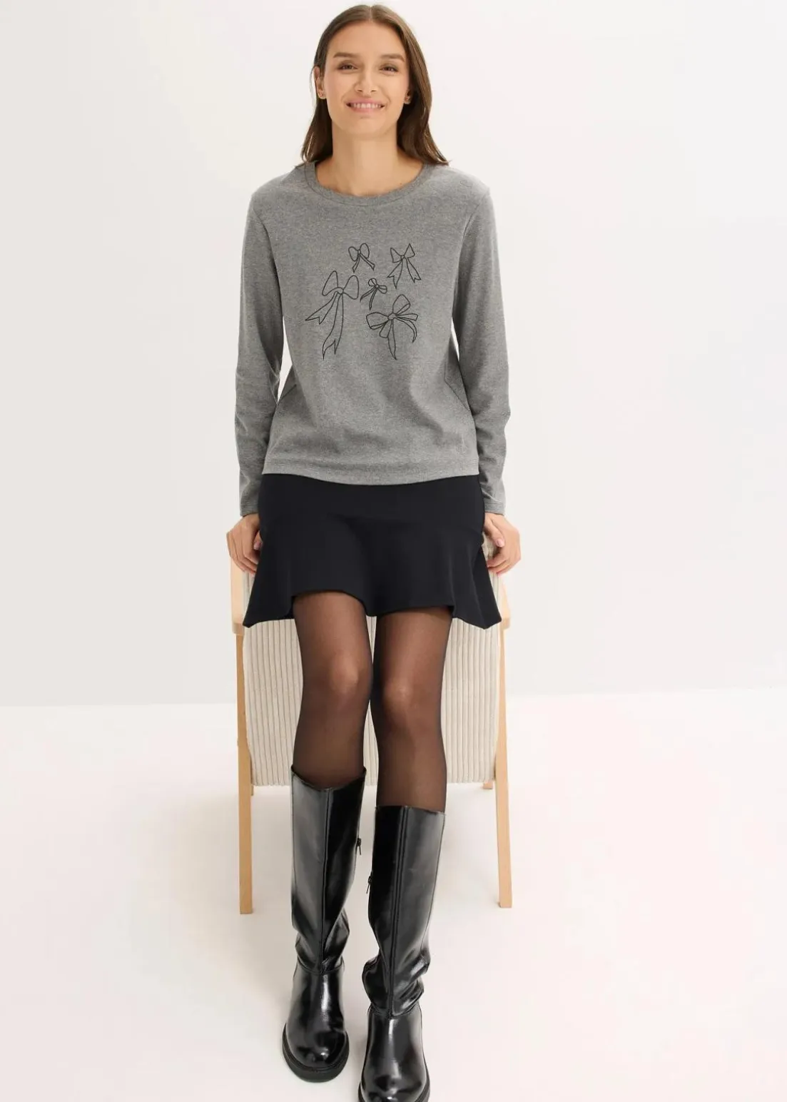 Langarmshirt mit Schleifenprint aus reiner Bio-Baumwolle