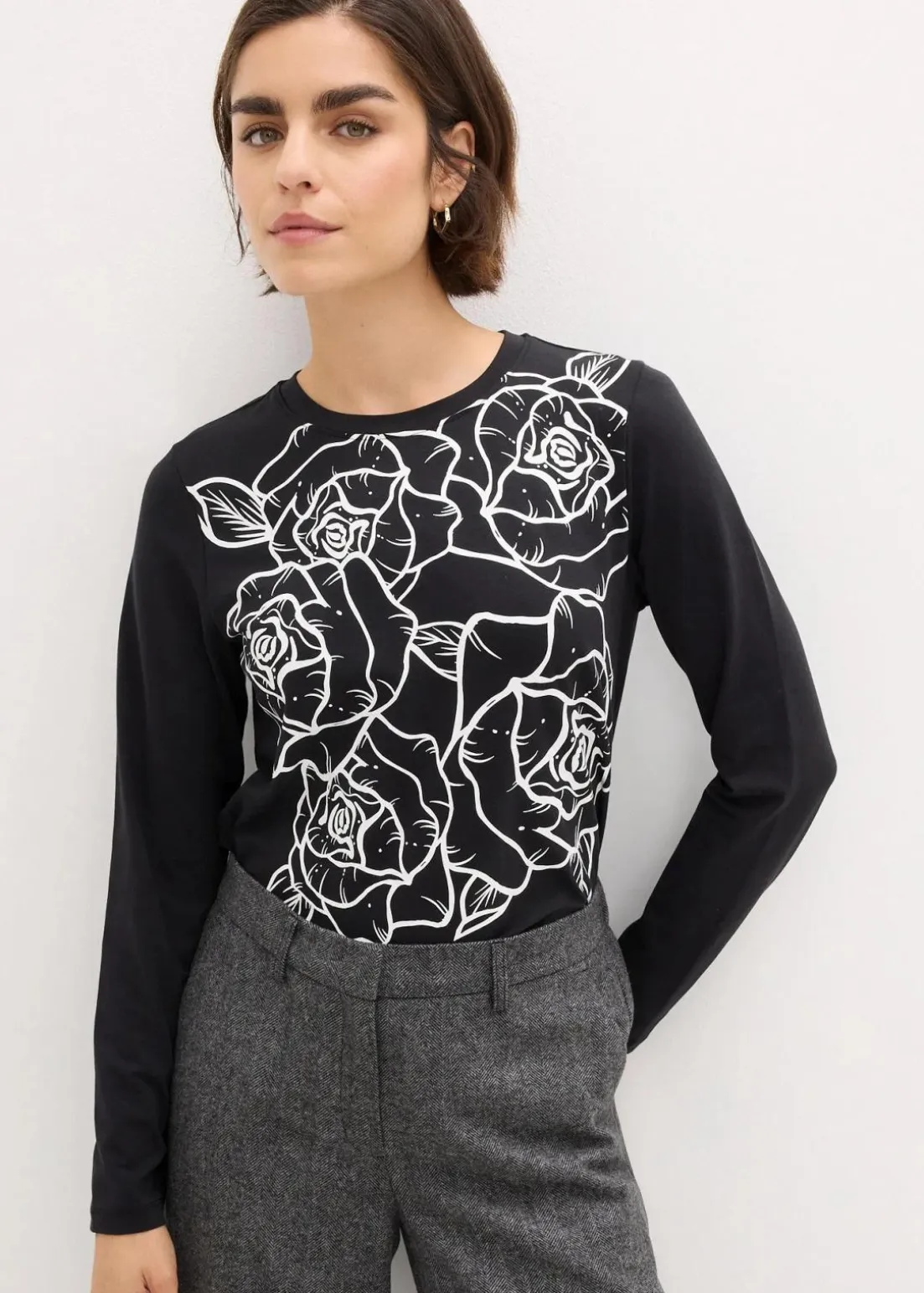 feminines Langarmshirt mit plakativem Rosendruck