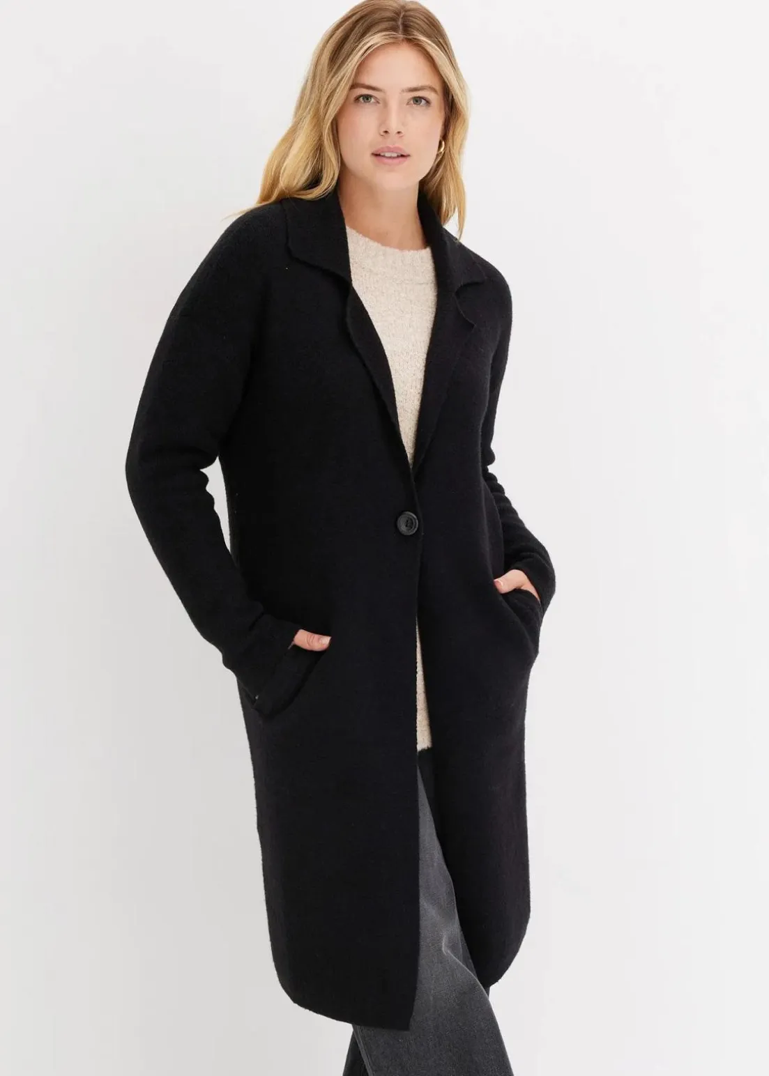 Locker geschnittener Strickmantel mit Reverskragen