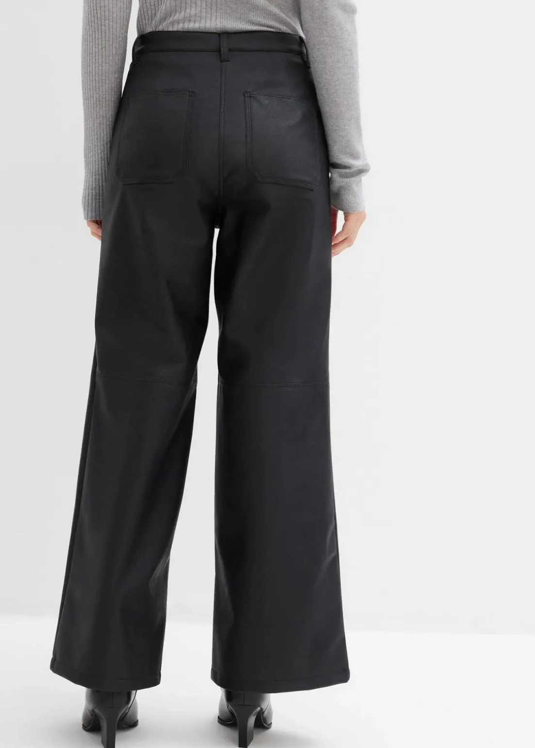 Ausgestellte Lederimitat-Hose mit farblich passenden Steppnähten auf Kniehöhe