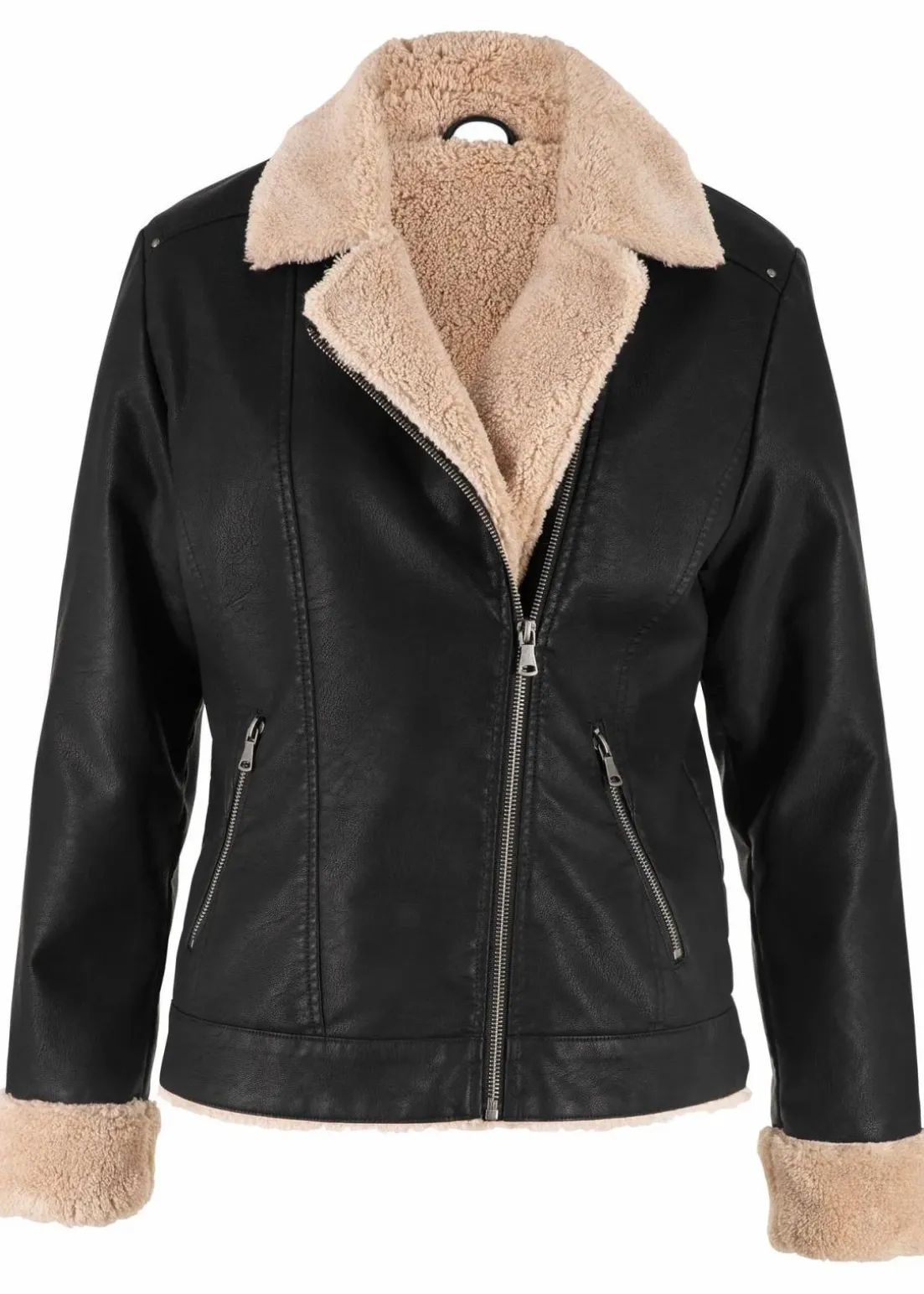 Modern gefütterte Lederimitat-Jacke