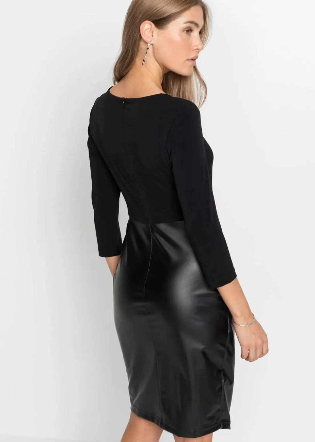 Stylisches Kleid mit Lederimitat-Rock und Jersey-Oberteil