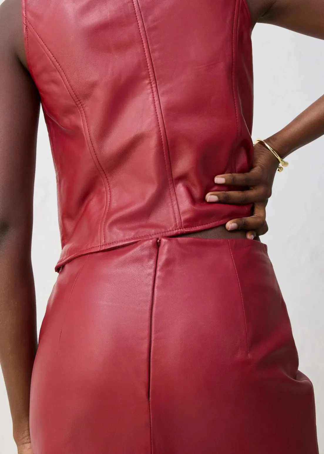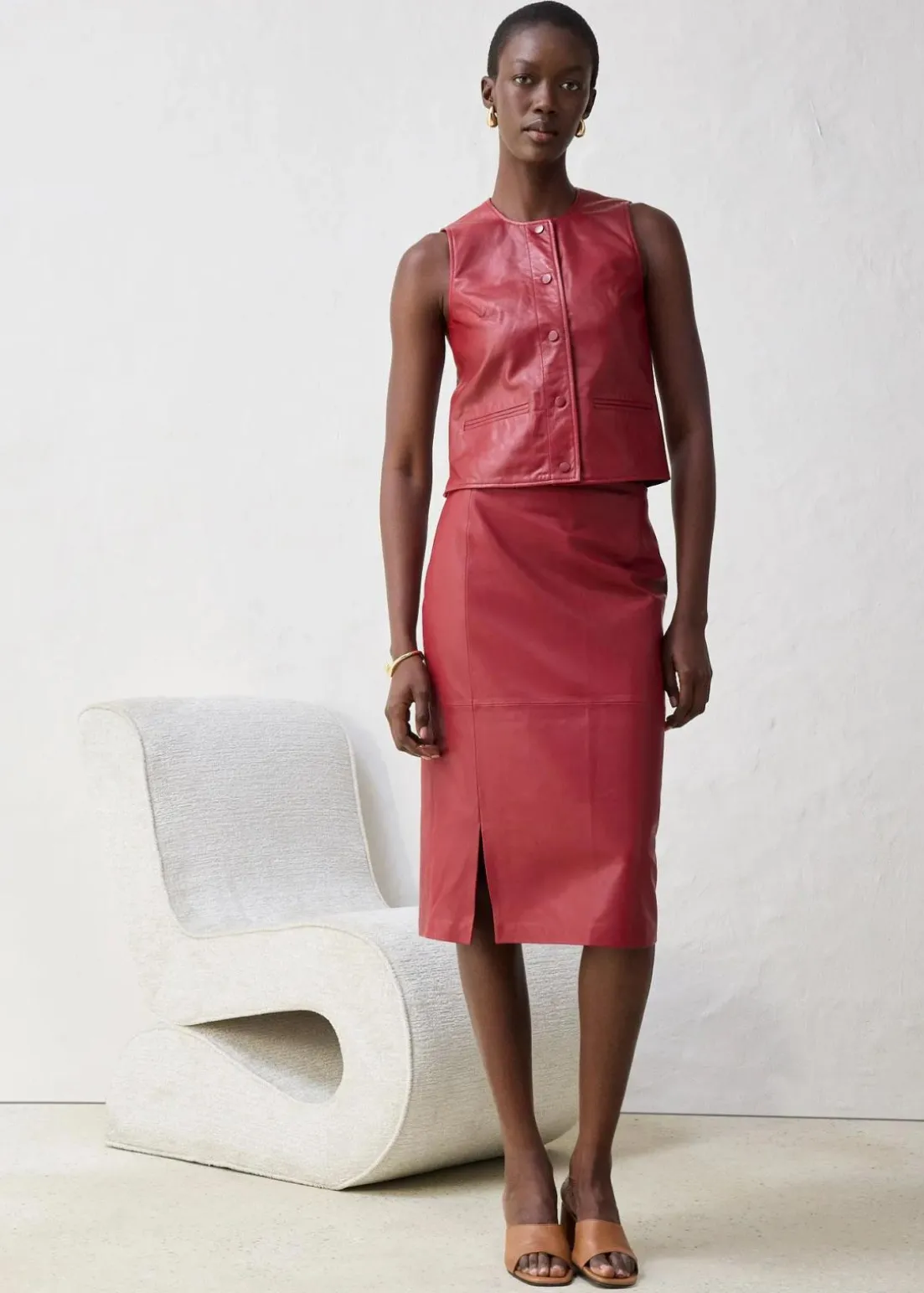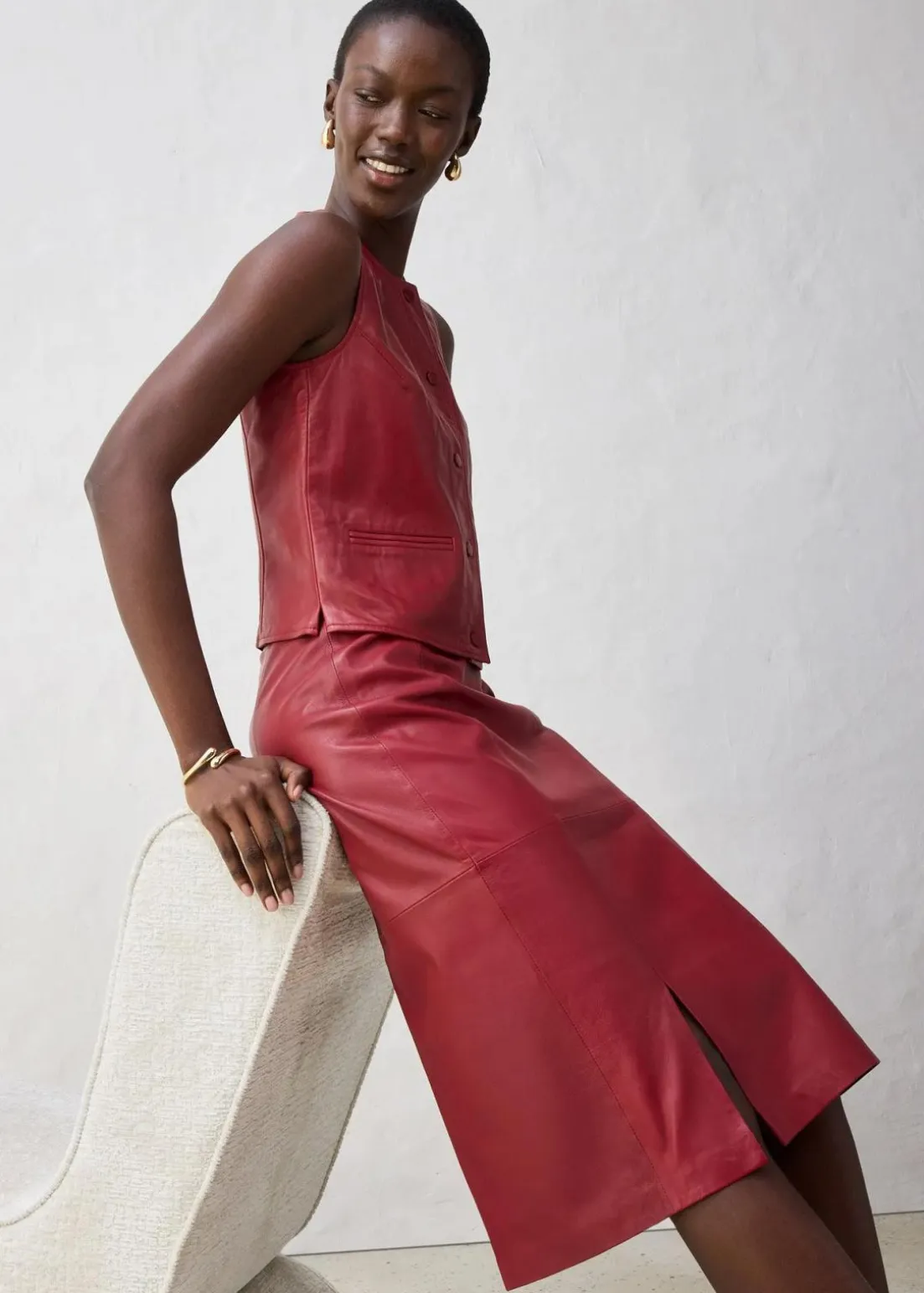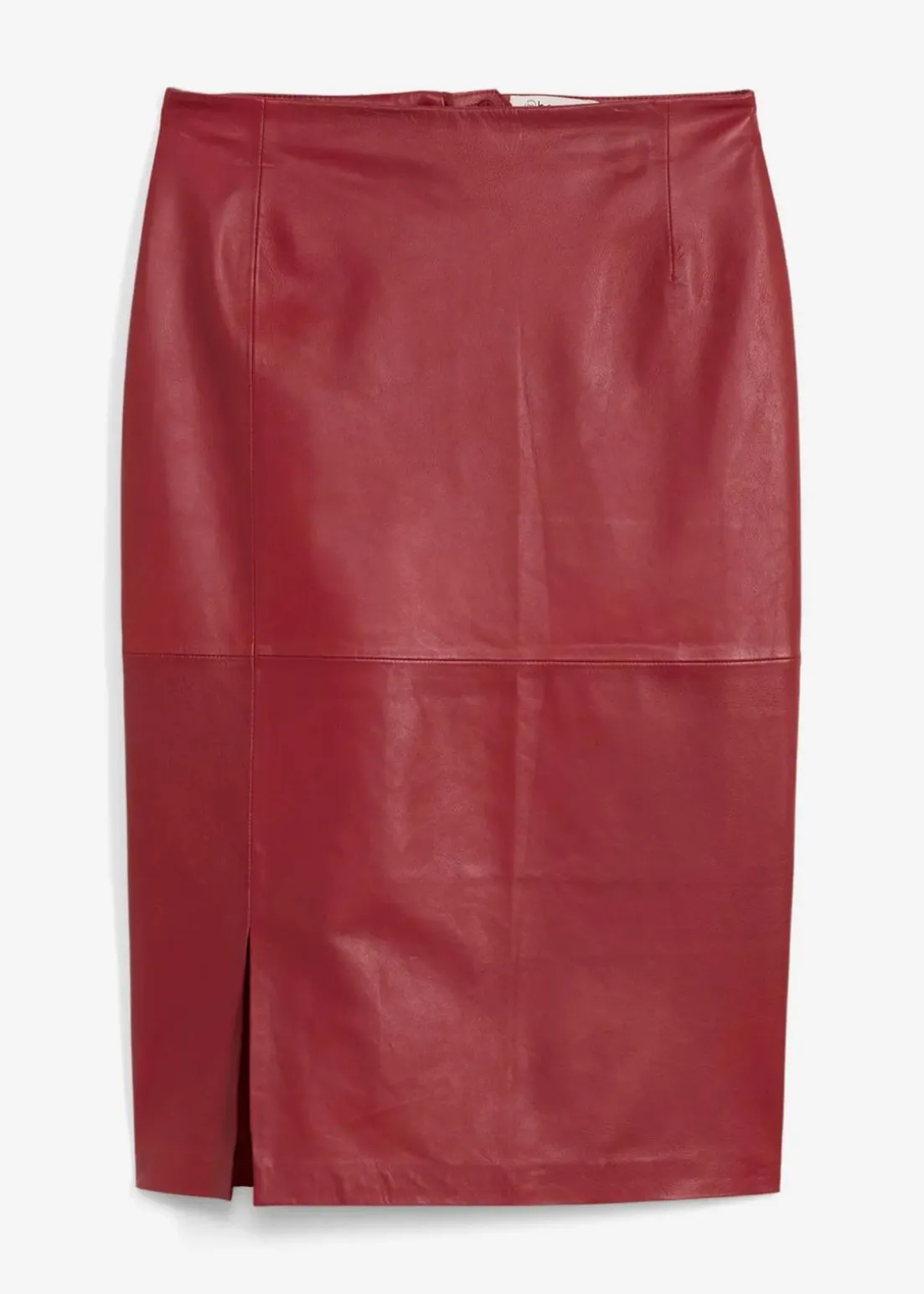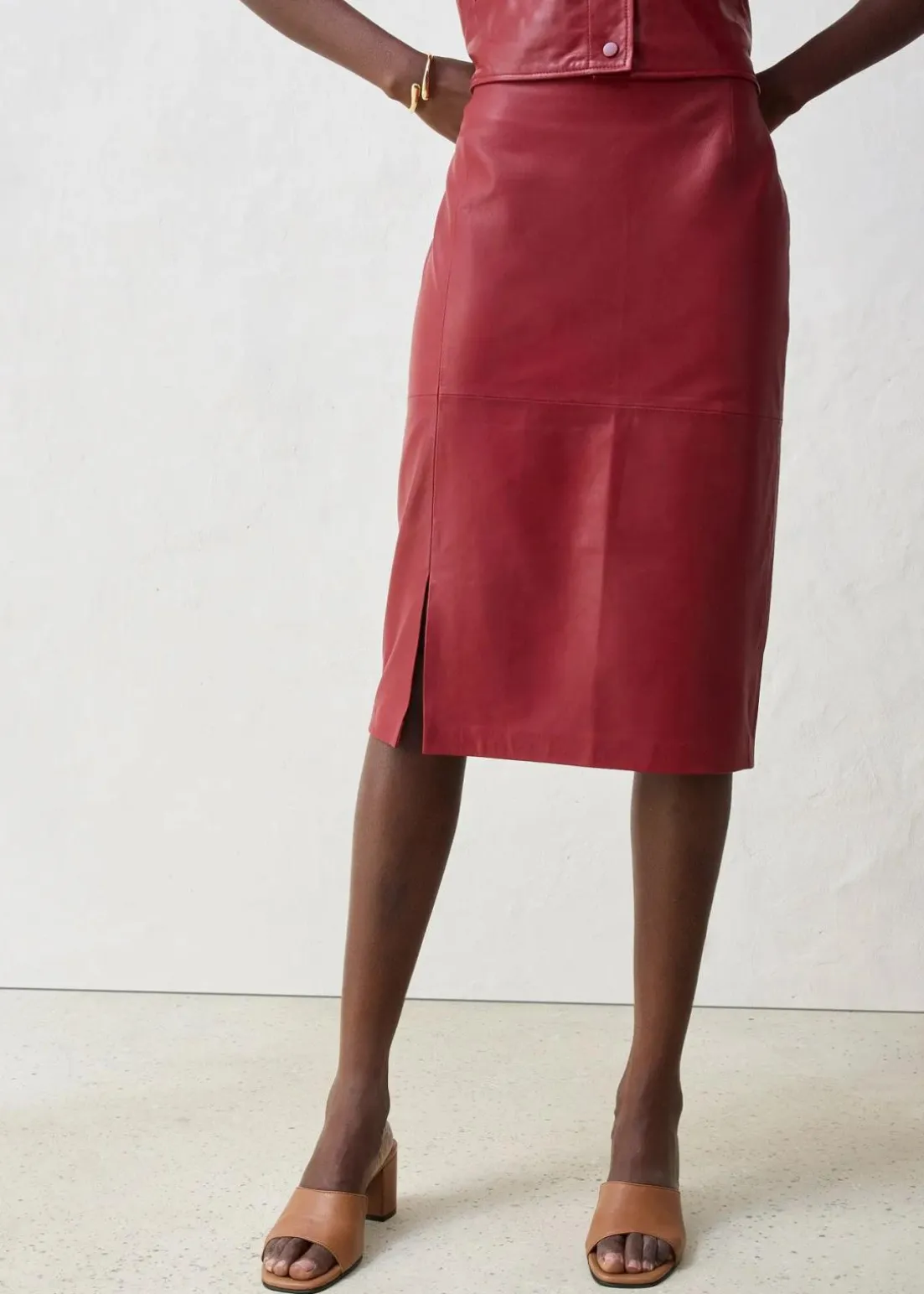Moderner Lederrock in figurumspielender Form, mit eleganten Schlitz vorne
