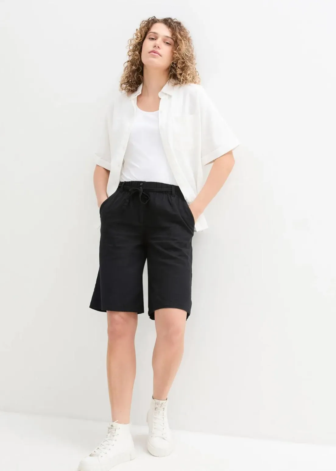Knielange Shorts aus einem luftigen Leinen-/Viskosemischgewebe