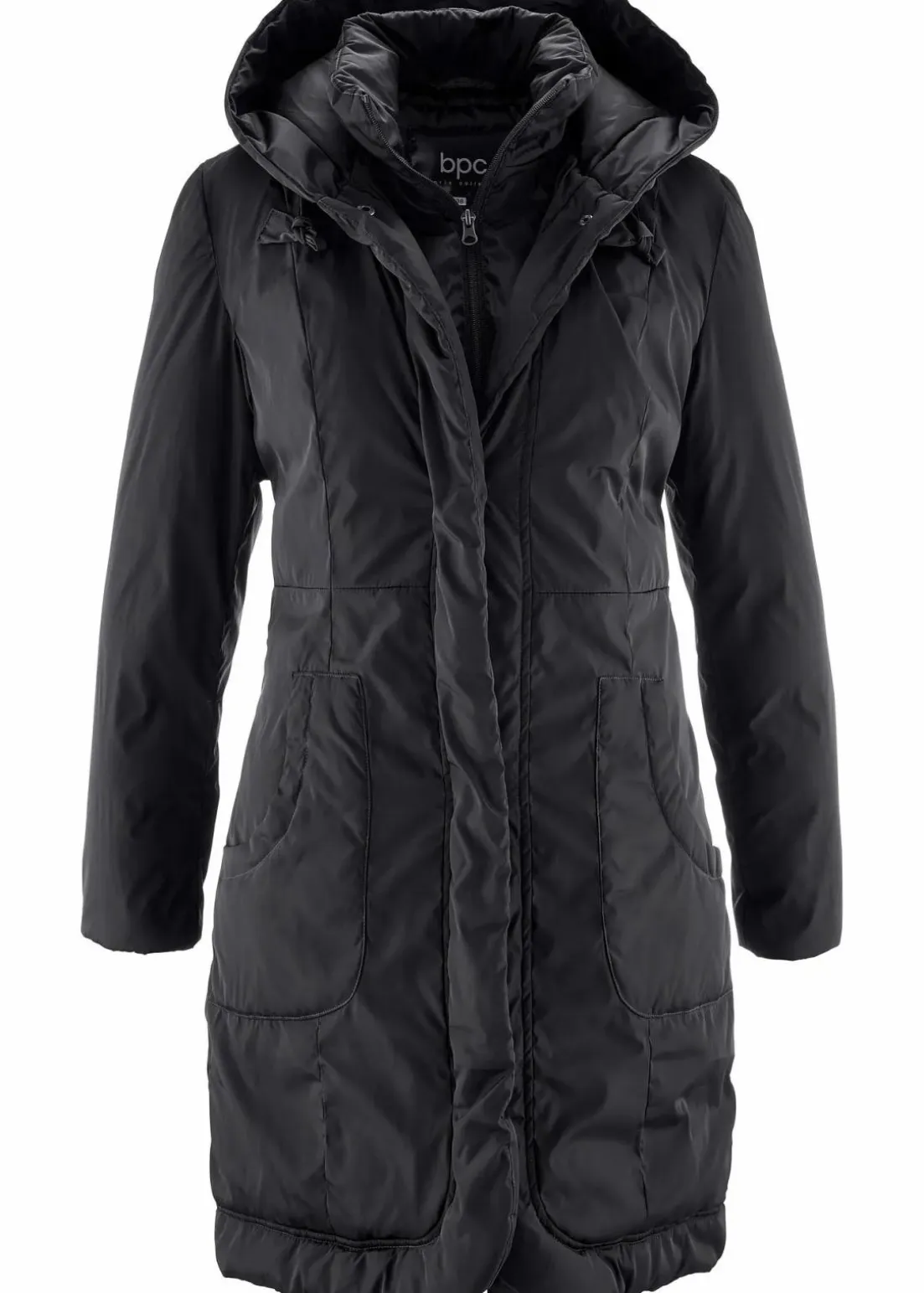 Mit diesem Mantel der Marke bpc sind Sie in der kalten Jahreszeit warm angezogen. Er überzeugt mit einer guten Fütterung und einer figurumspielenden Passform. Ein besonderer Hingucker ist die verspielte 2-in-1-Optik: Innen ist das Modell per Reißverschluss zu schließen, außen mit Knöpfen.Der gefütterte Mantel zeichnet sich durch eine weitenregulierbare Kapuze und einen Stehkragen aus.