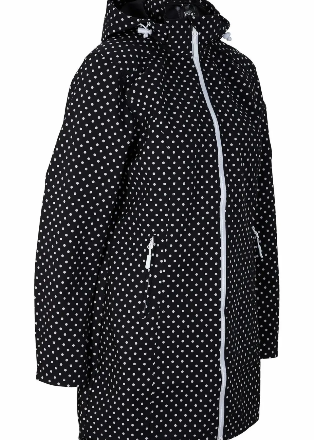 Komfortable Softshell-Langjacke mit Stretchanteil, abnehmbarer Kapuze und Reißverschlusstaschen, gerade geschnitten